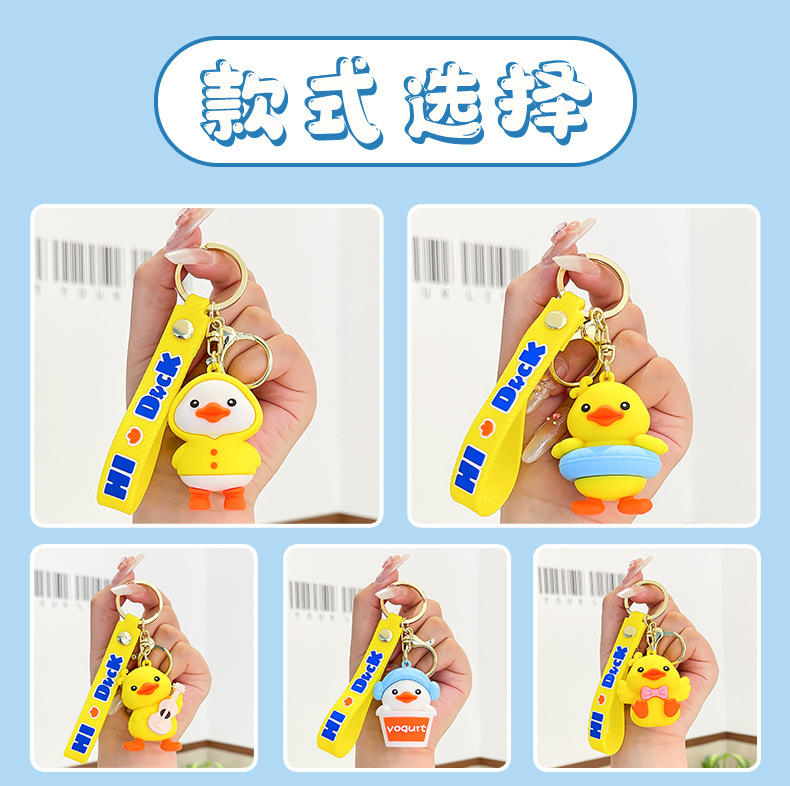 Happy Duckling Cartoon Keychain Mặt Dây chuyền búp bê Móc chìa khóa xe hơi tinh tế Đồ trang trí cặp sách dễ thương Bán buôn Quà Tặng