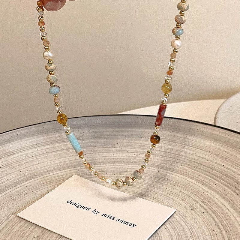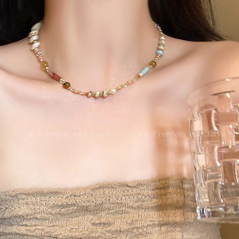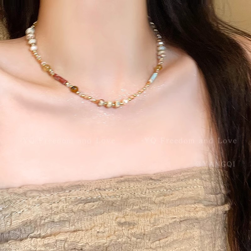 Hạt gạo Dopamine ngọt ngào, Vòng Cổ Đính Cườm hình trụ ngọc trai, Dây Chuyền xương đòn thích hợp khí chất thời trang, Dây Chuyền Cổ Dễ phối cá tính