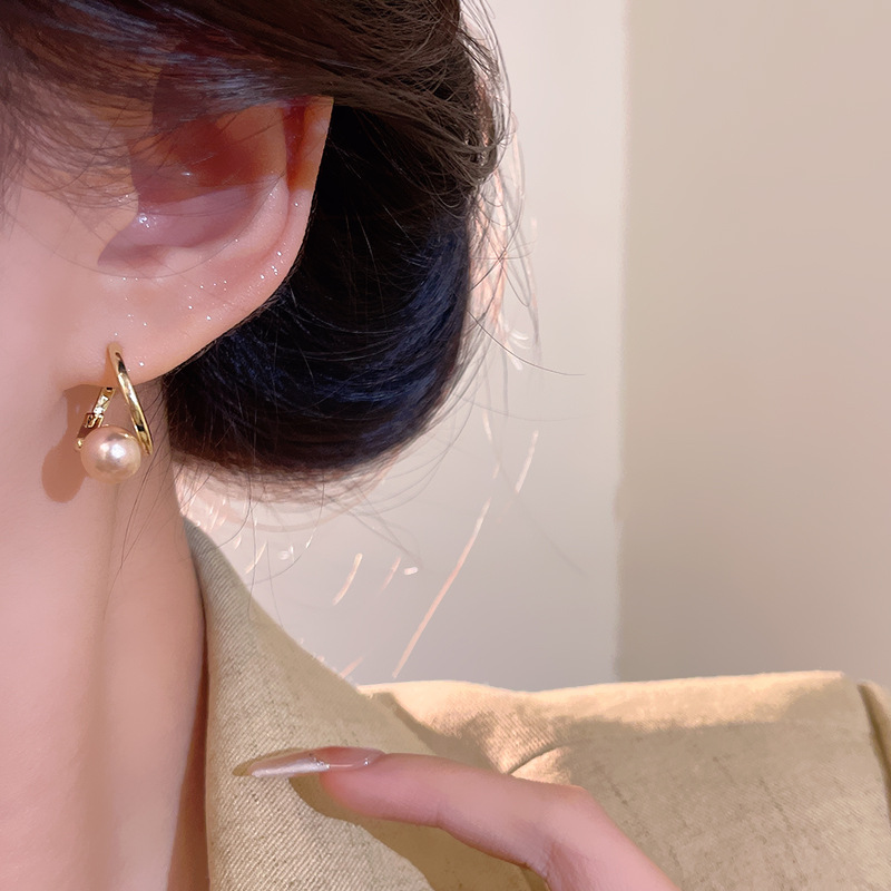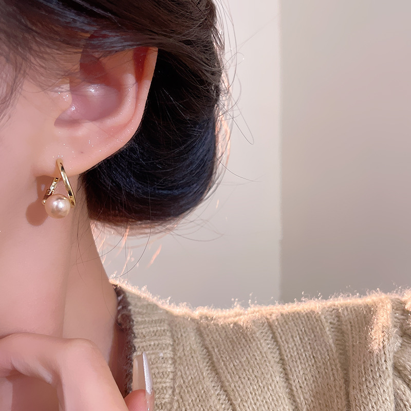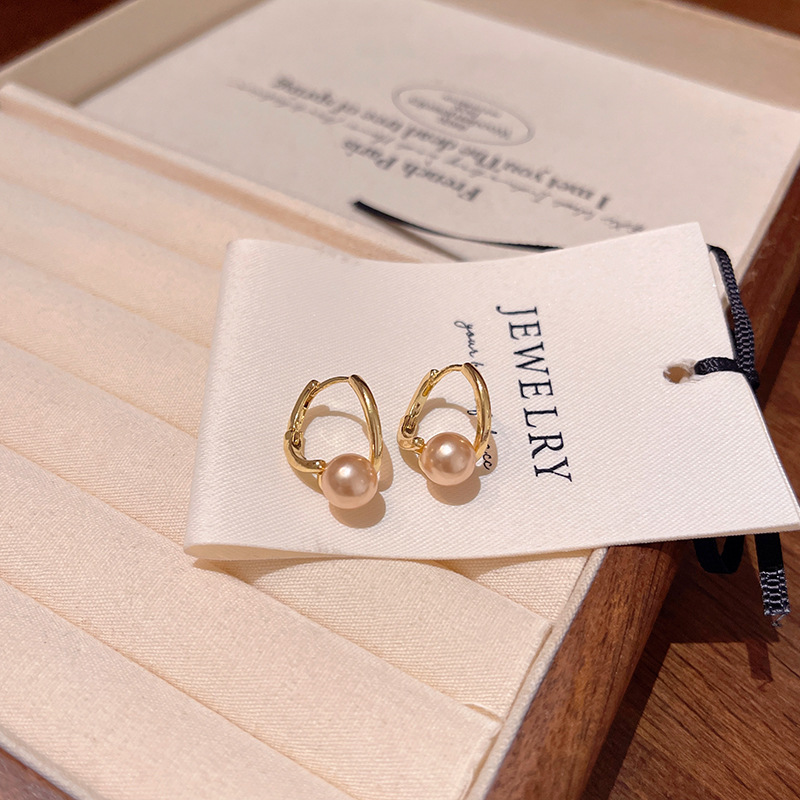 Hoa tai đính ngọc trai Champagne đơn giản cao cấp sang trọng nhẹ Hoa Tai Hoa Tai cùng kiểu quý cô khí chất dễ phối
