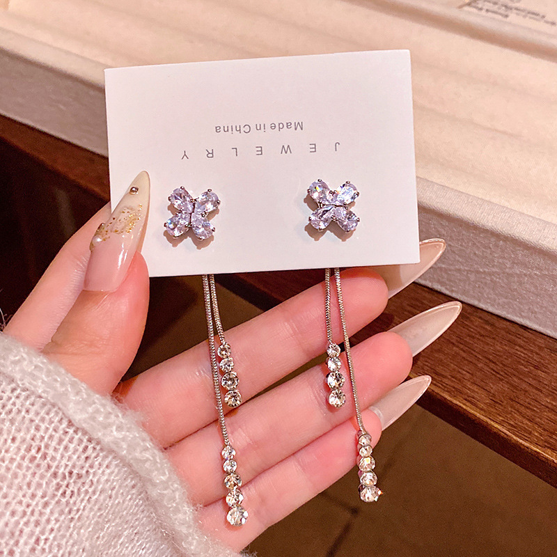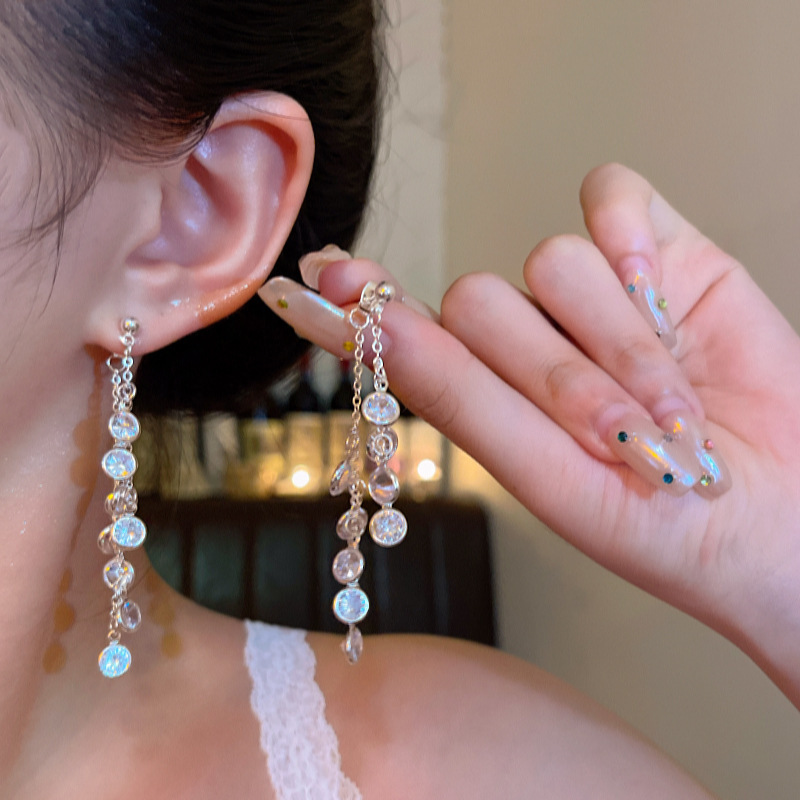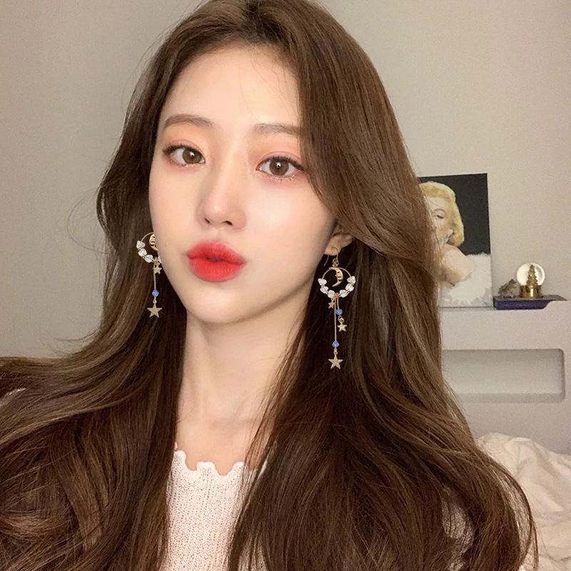 Hoa Tai Dongdaemun Hàn Quốc Hoa Tai kim bạc 925 Hoa tai ngọc trai cổ điển phóng đại Âu Mỹ Hoa tai dài tua rua cho nữ