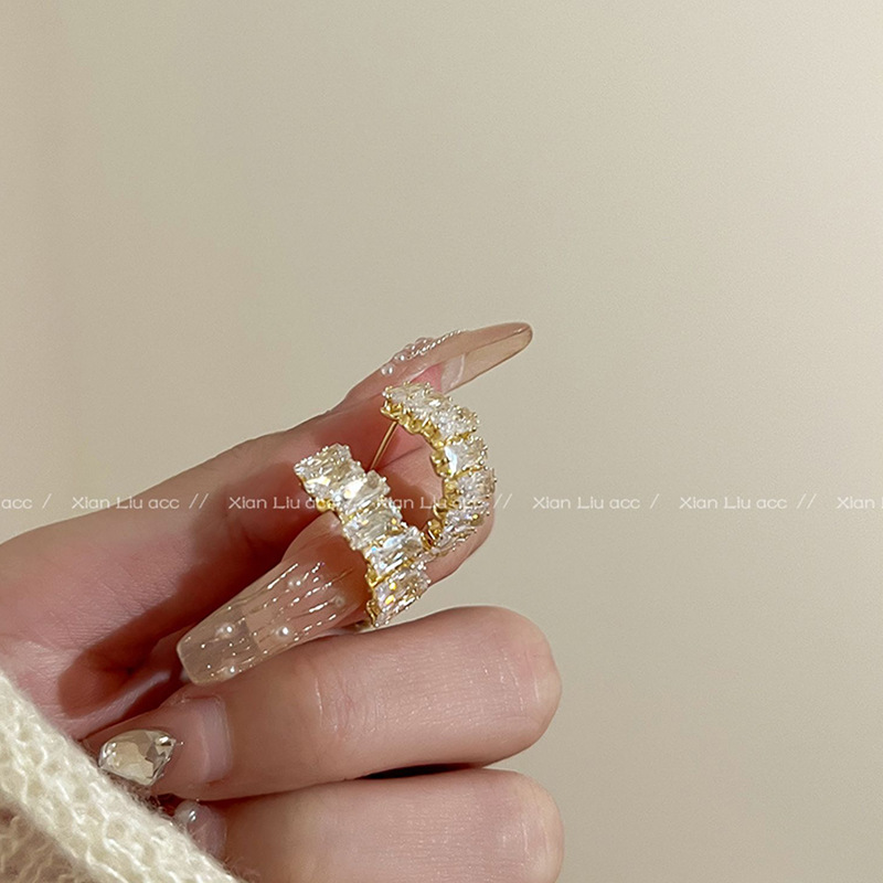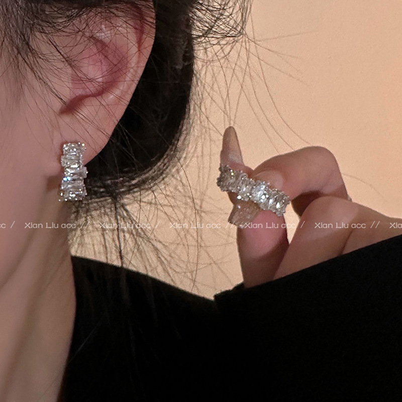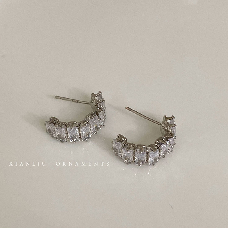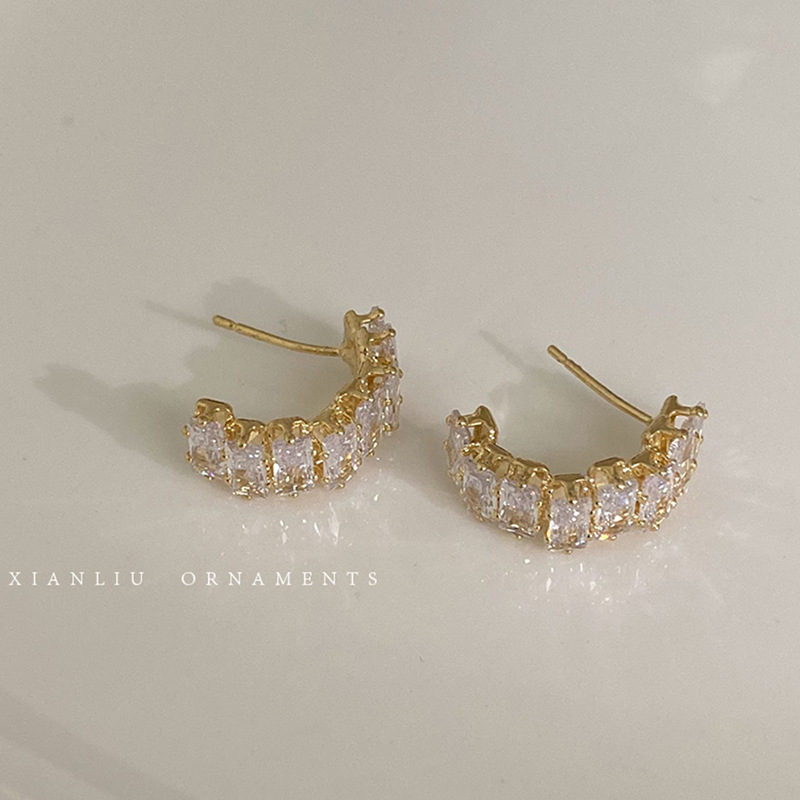 Hoa tai hình chữ C Zircon tinh tế sang trọng dành cho nữ Bông tai cao cấp khí chất dễ phối sành điệu Instagram hoa tai cùng kiểu hot trên mạng