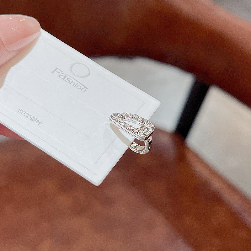 Hoa tai hình học kim cương siêu lấp lánh cho phụ nữ sang trọng, hoa tai không lỗ tai khí chất dễ phối, hoa tai nổi tiếng trên mạng