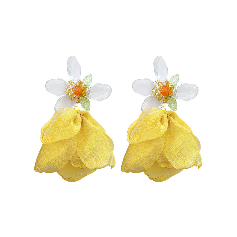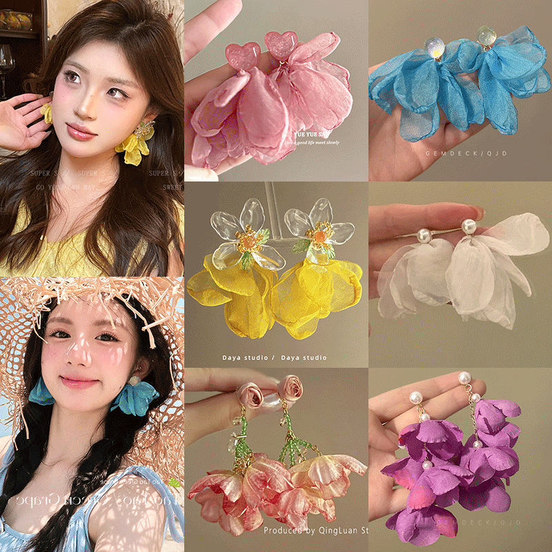Hoa tai hoa không khí cao cấp phong cách nghỉ dưỡng Nữ Hoa Tai Hoa tai ren cánh hoa voan khí chất siêu tiên nữ trang sức hoa tai vải nghệ thuật