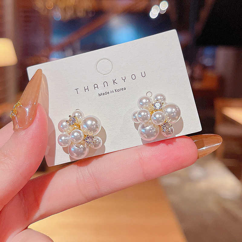 Hoa tai hoa ngọc trai cổ điển siêu tiên nữ Hàn Quốc Nữ Kim bạc S925 khí chất thời trang hot trên mạng trang sức hoa tai cùng kiểu
