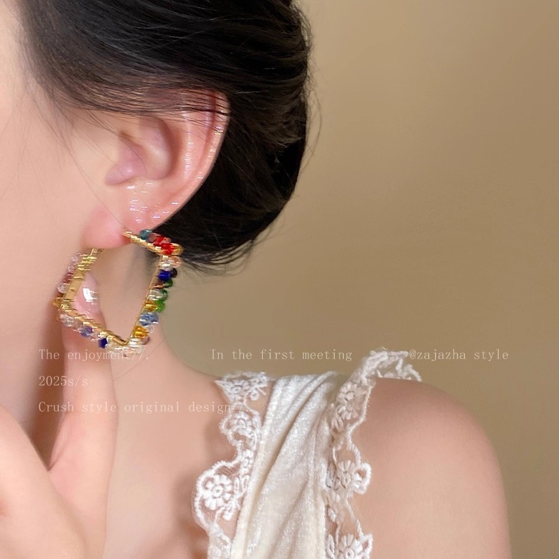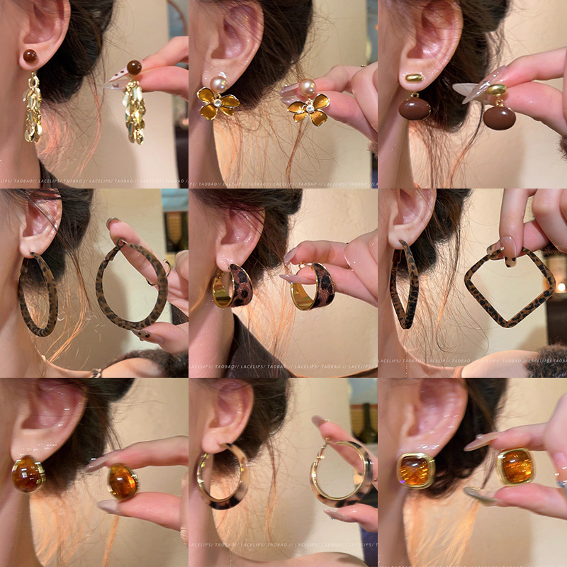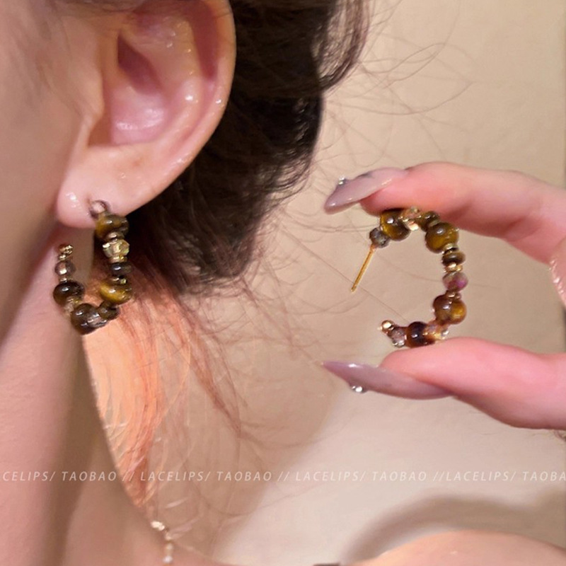 Hoa tai họa tiết da báo hình học kim bạc S925 hoa tai mắt hổ cao cấp sang trọng nhẹ nhàng cho nữ hoa tai Zircon tinh tế