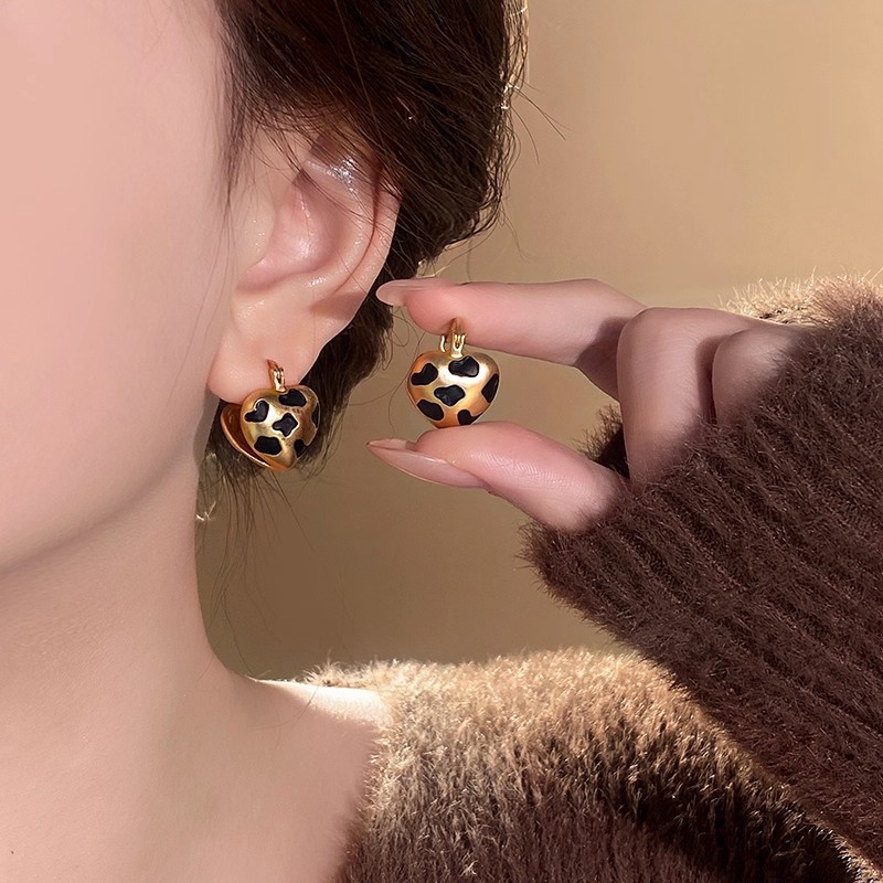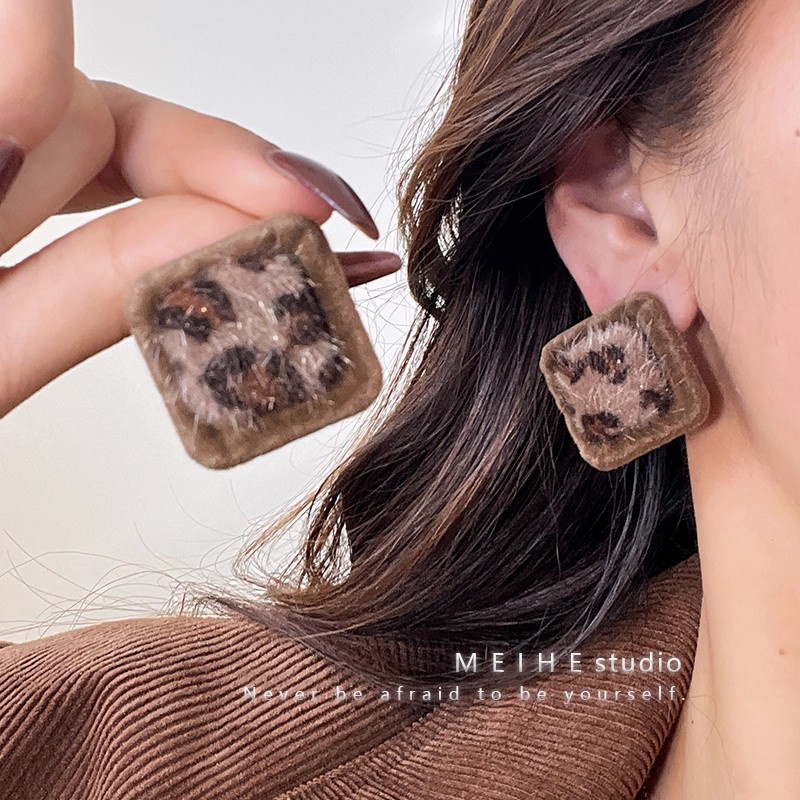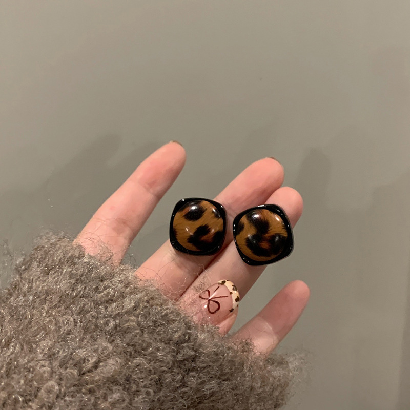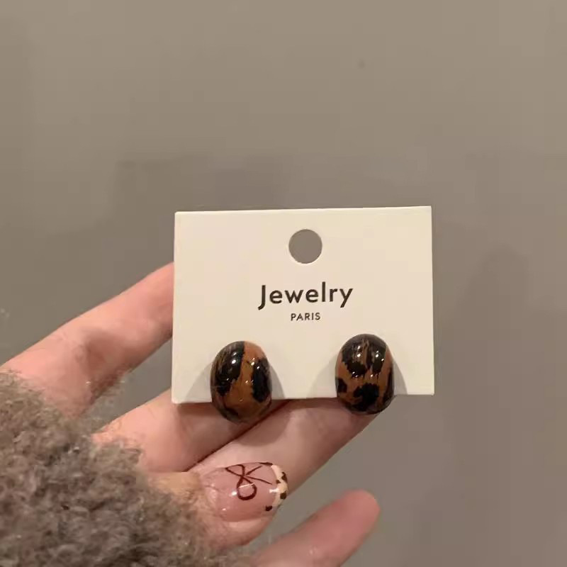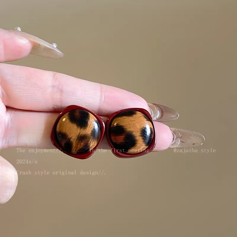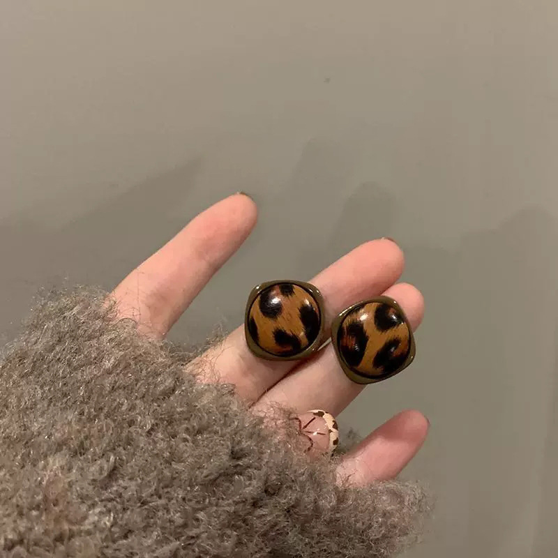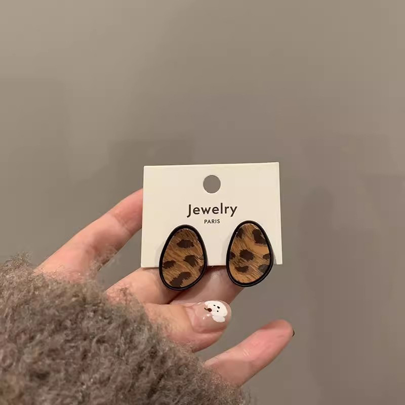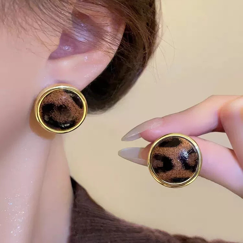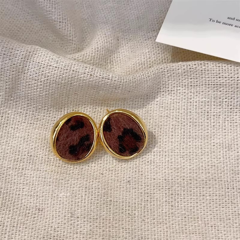 Hoa tai họa tiết da báo mẫu hot mẫu thu đông 2025 Bông tai nữ phong cách Hồng Kông thời trang cổ điển dễ phối khí chất cao cấp