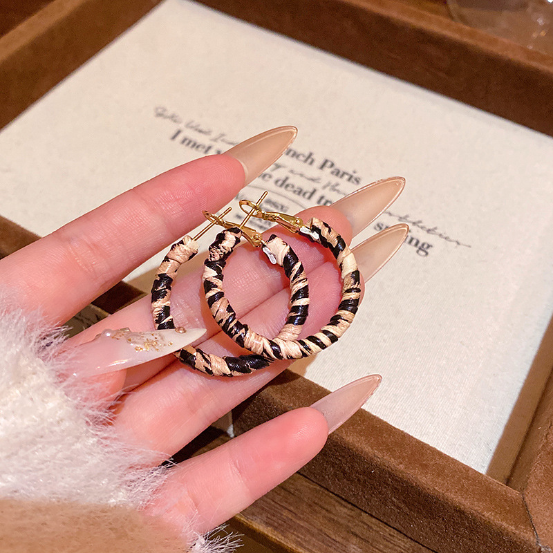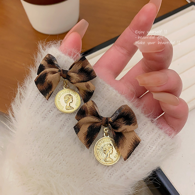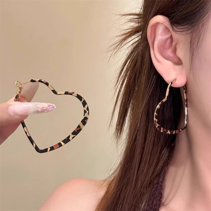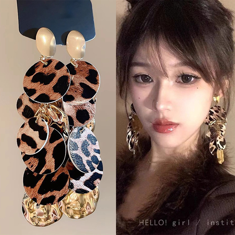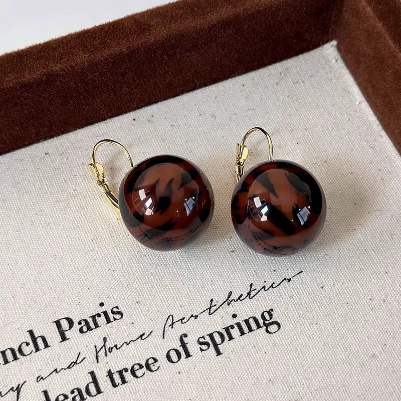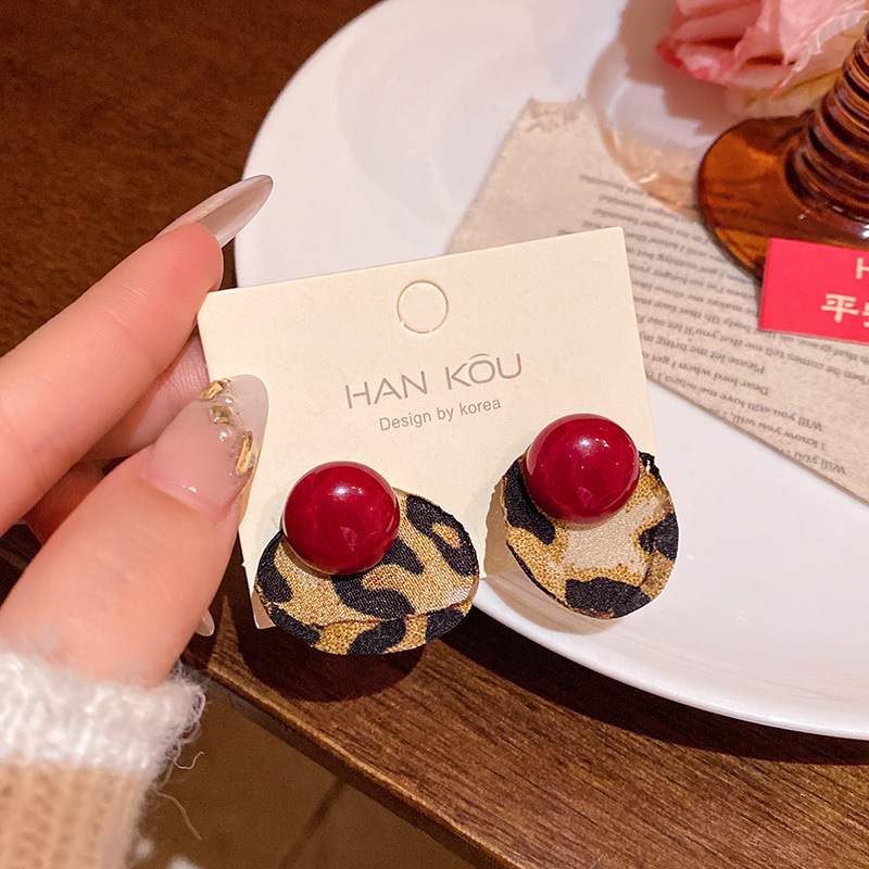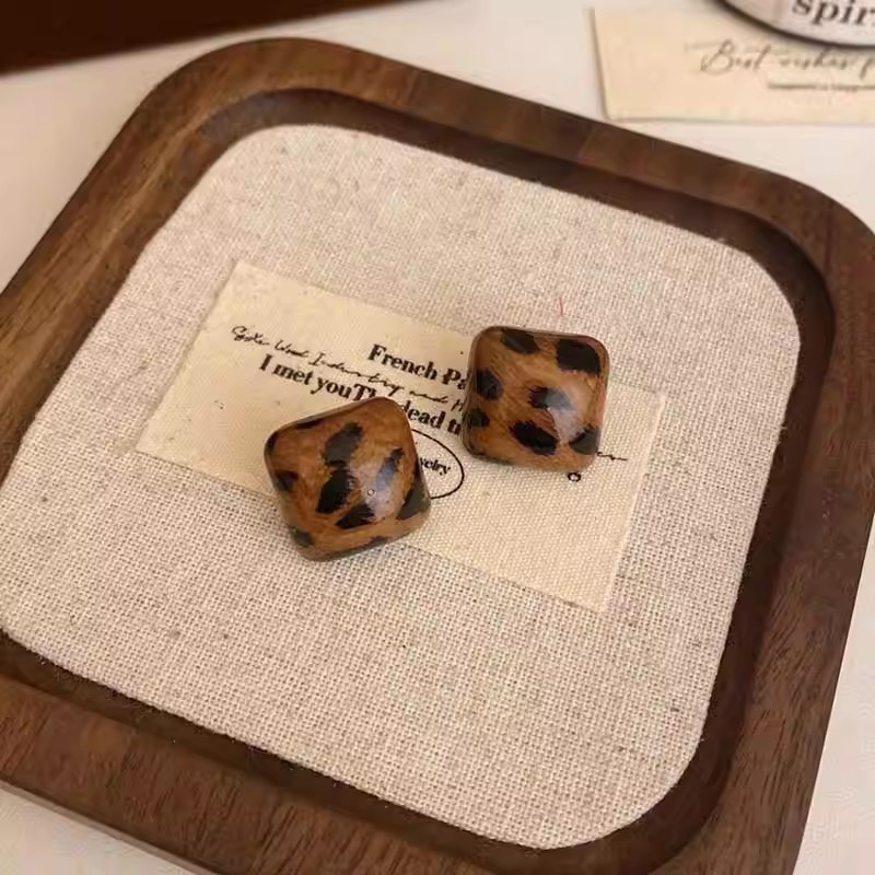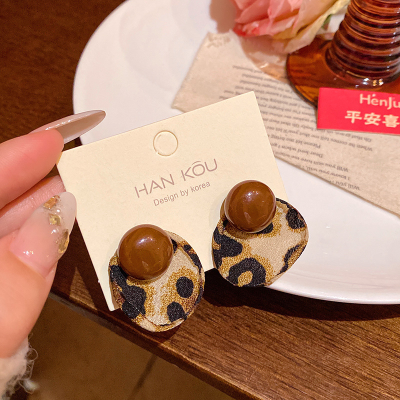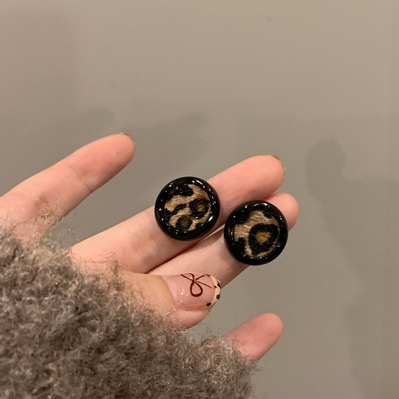 Hoa tai họa tiết da báo mẫu hot mẫu thu đông 2025 Bông tai nữ phong cách Hồng Kông thời trang cổ điển dễ phối khí chất cao cấp