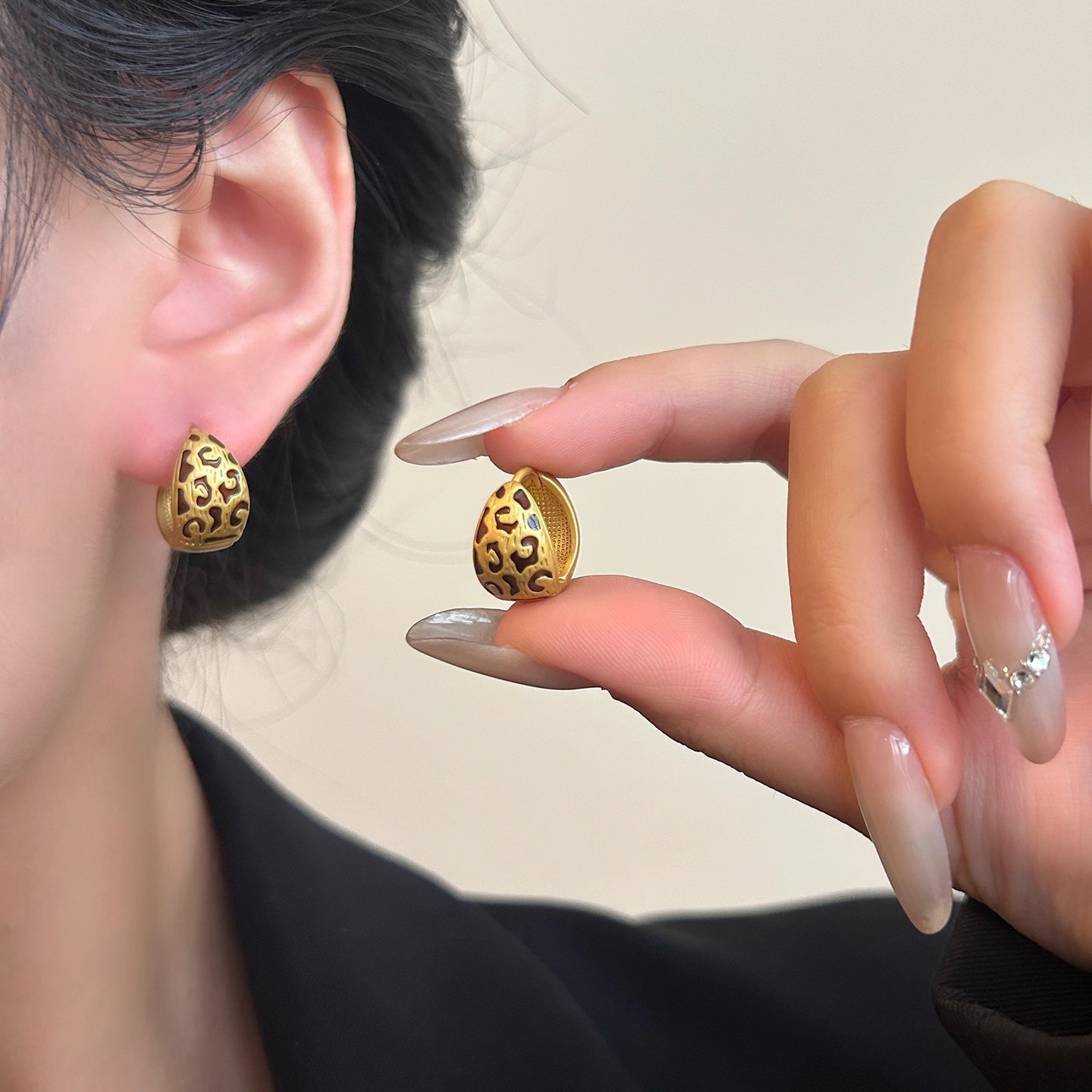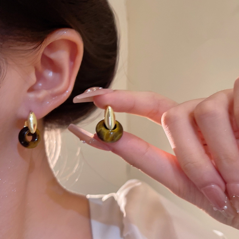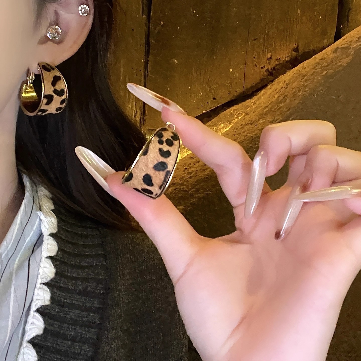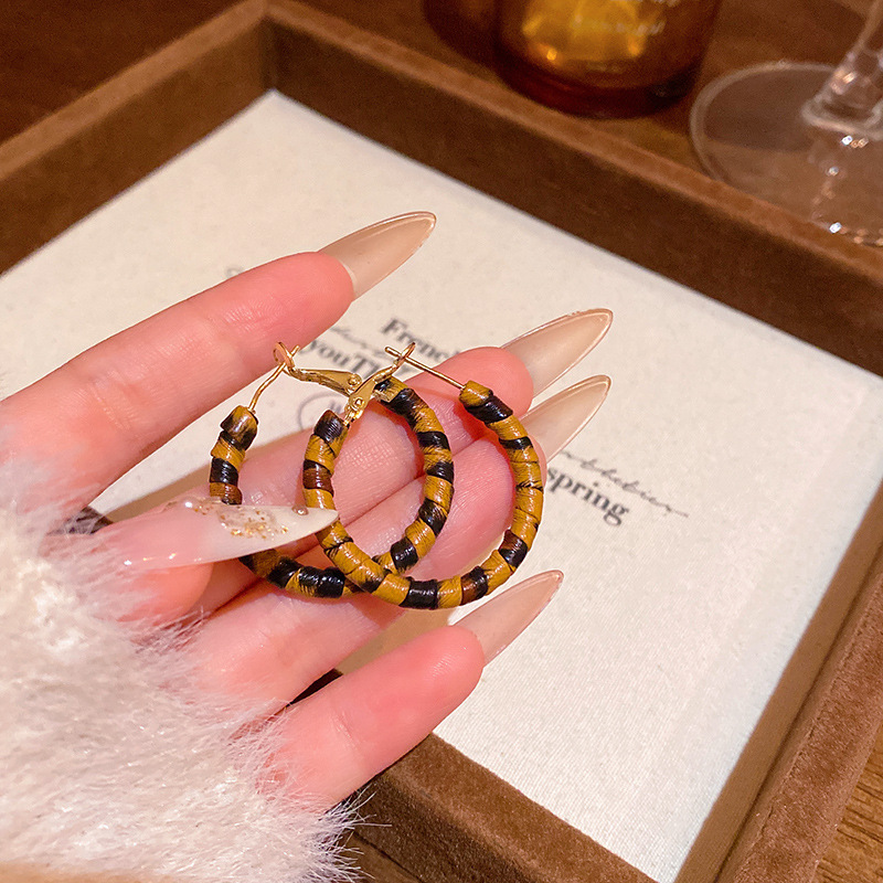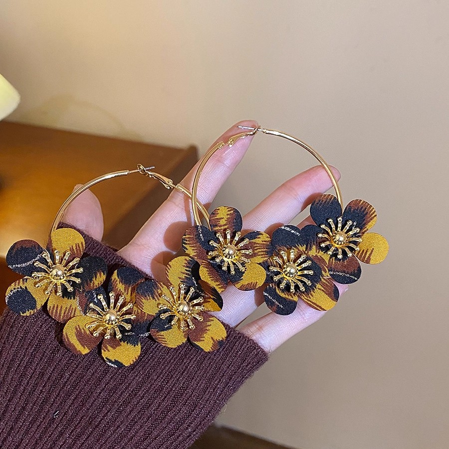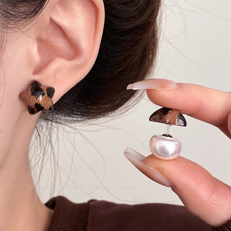 Hoa tai họa tiết da báo mẫu hot mẫu thu đông 2025 Bông tai nữ phong cách Hồng Kông thời trang cổ điển dễ phối khí chất cao cấp