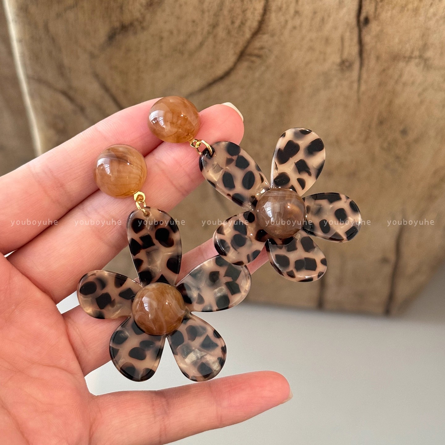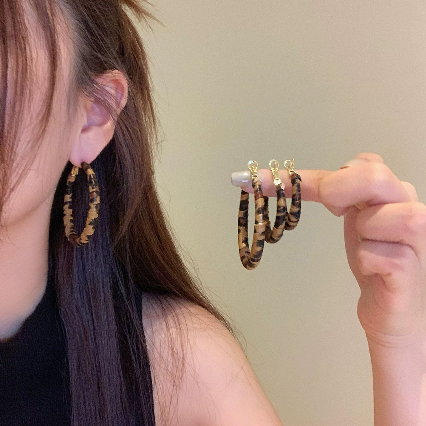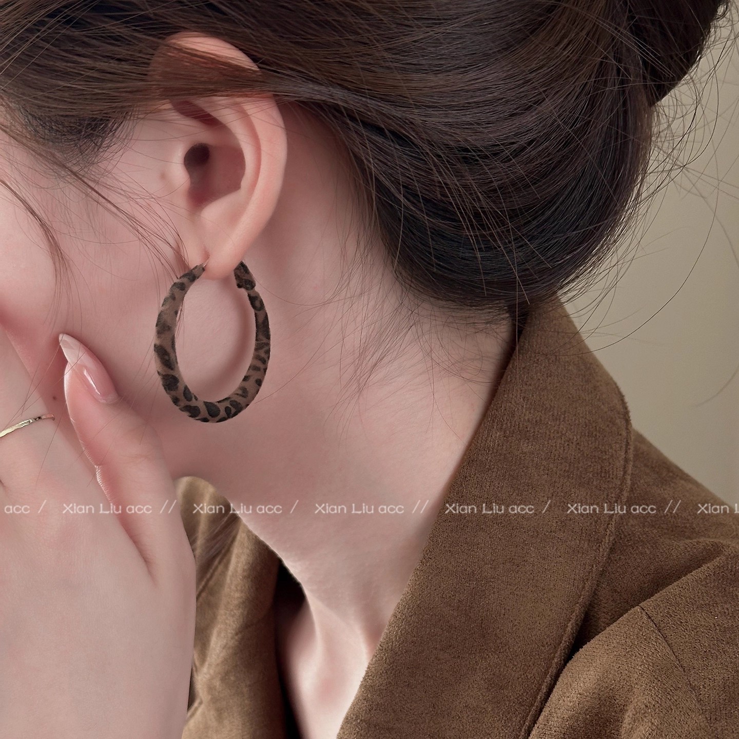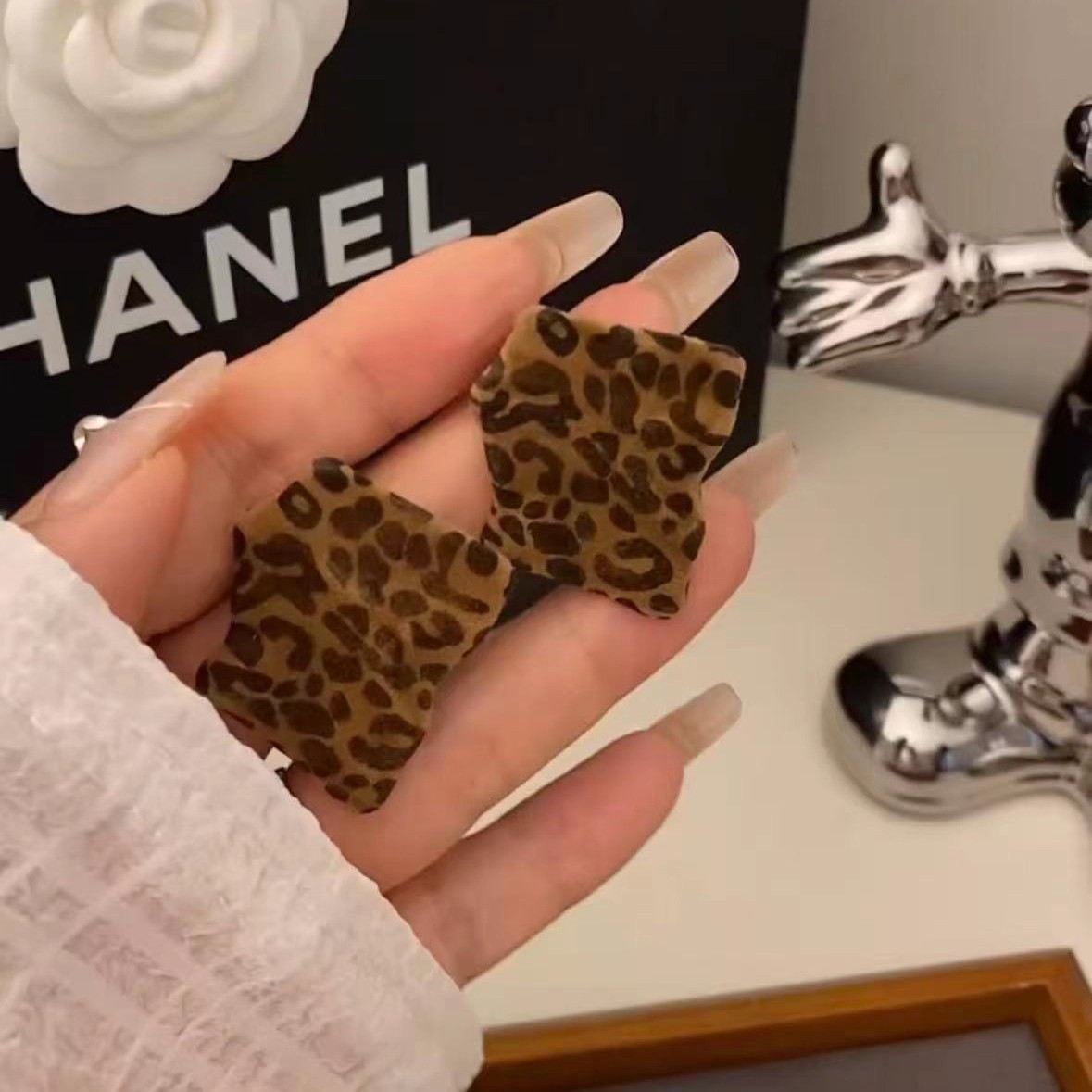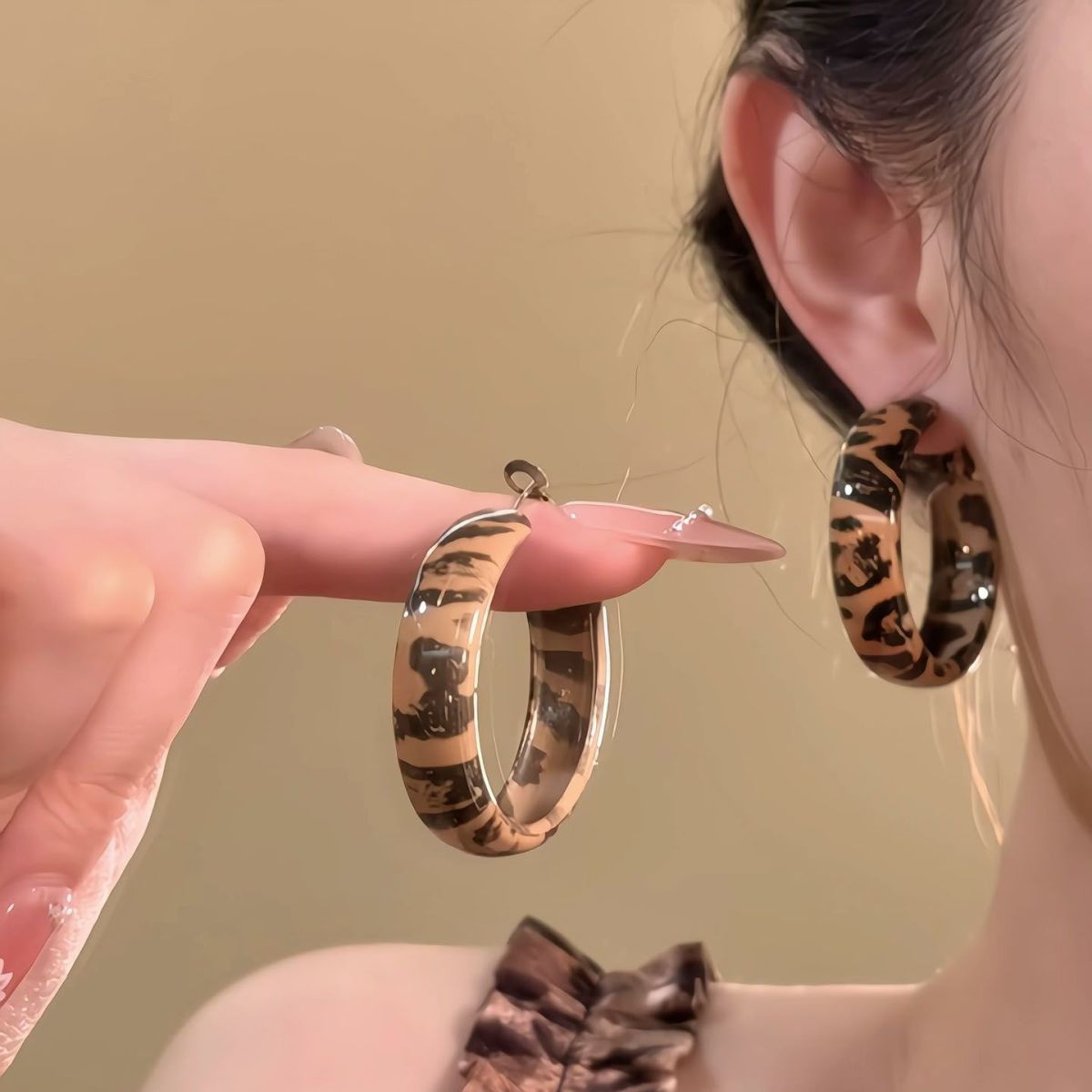 Hoa tai họa tiết da báo mẫu hot mẫu thu đông 2025 Bông tai nữ phong cách Hồng Kông thời trang cổ điển dễ phối khí chất cao cấp
