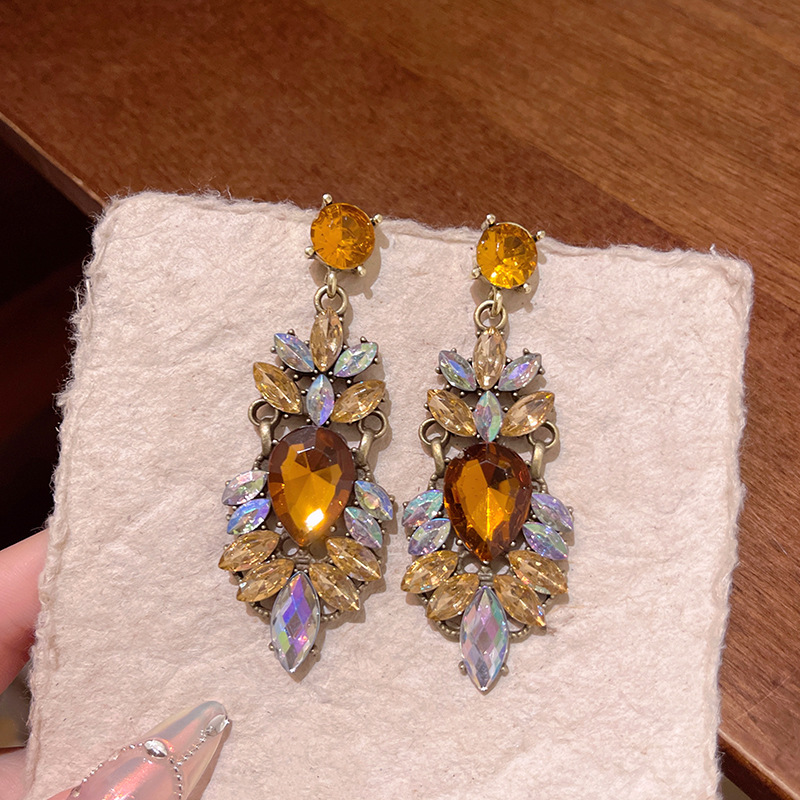 Hoa tai kim cương giả kim cương làm cũ phong cách Instagram Âu Mỹ cổ điển vintage hoa tai đinh tán hot trên mạng mẫu công nghiệp nặng phóng đại cho nữ