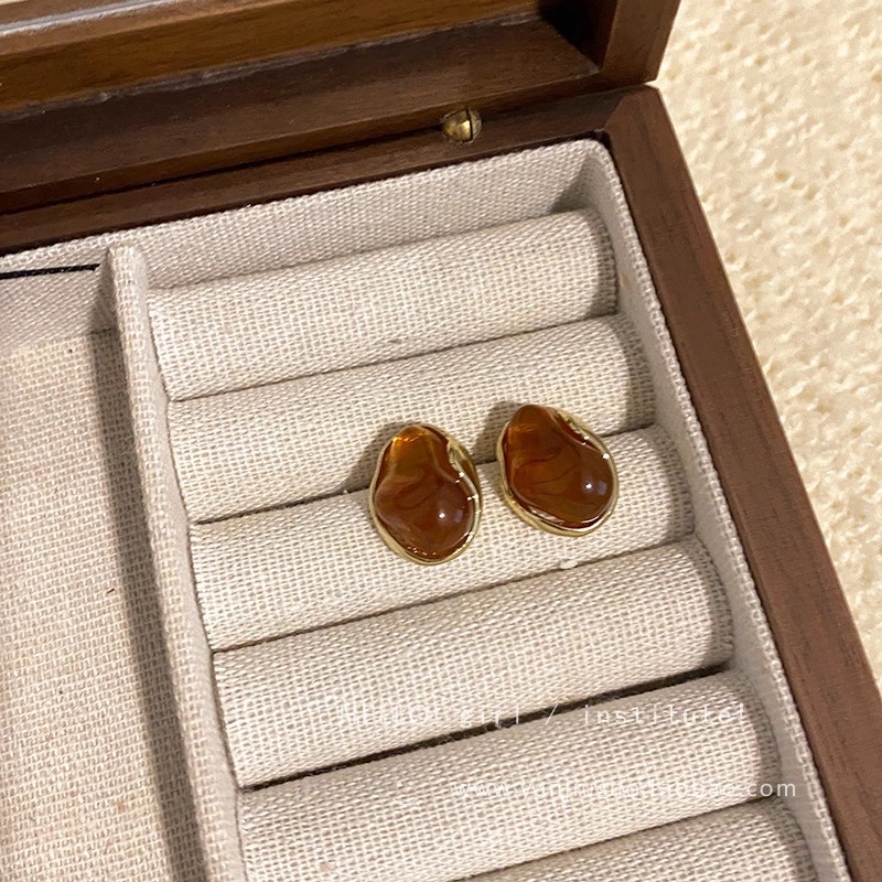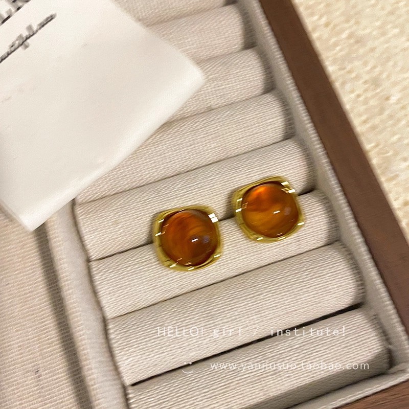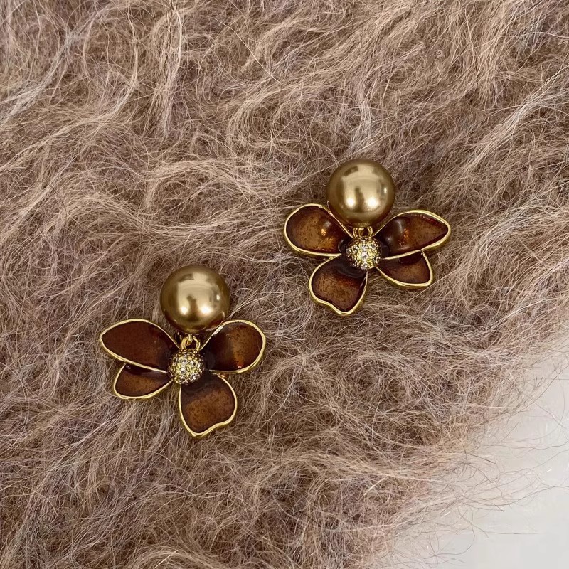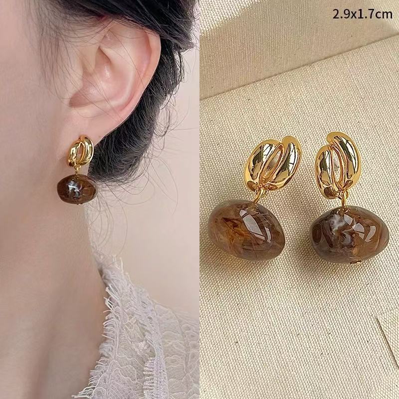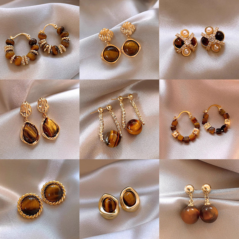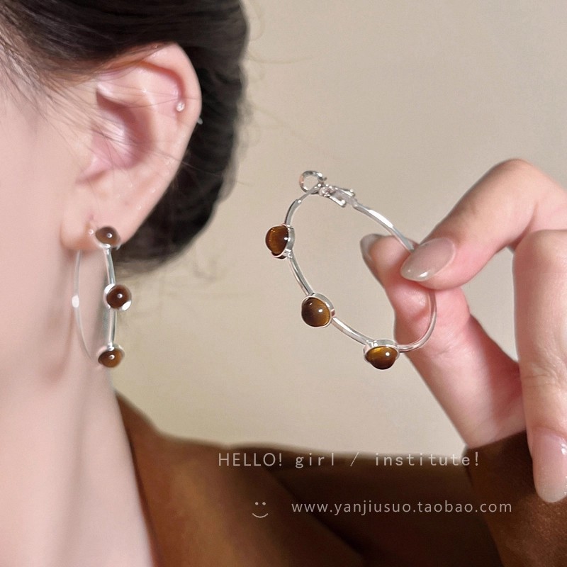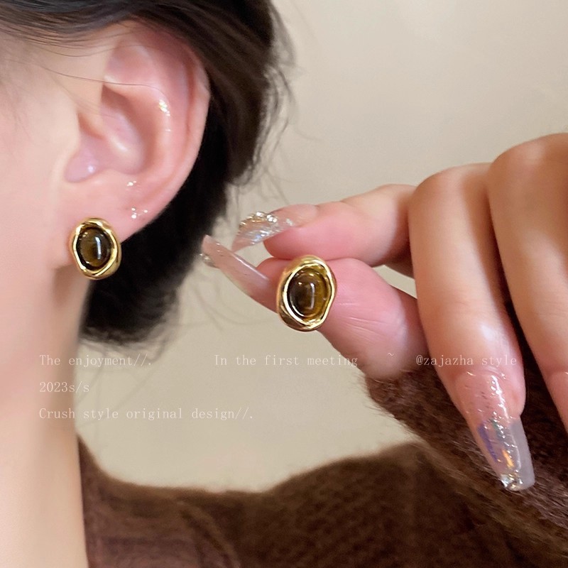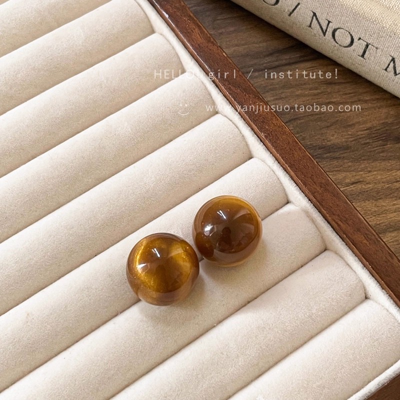 Hoa Tai Maillard Màu cà phê mẫu thu đông năm 2025 nữ phong cách Hồng Kông cổ điển thời trang khí chất hoa tai mắt Hổ Trang sức