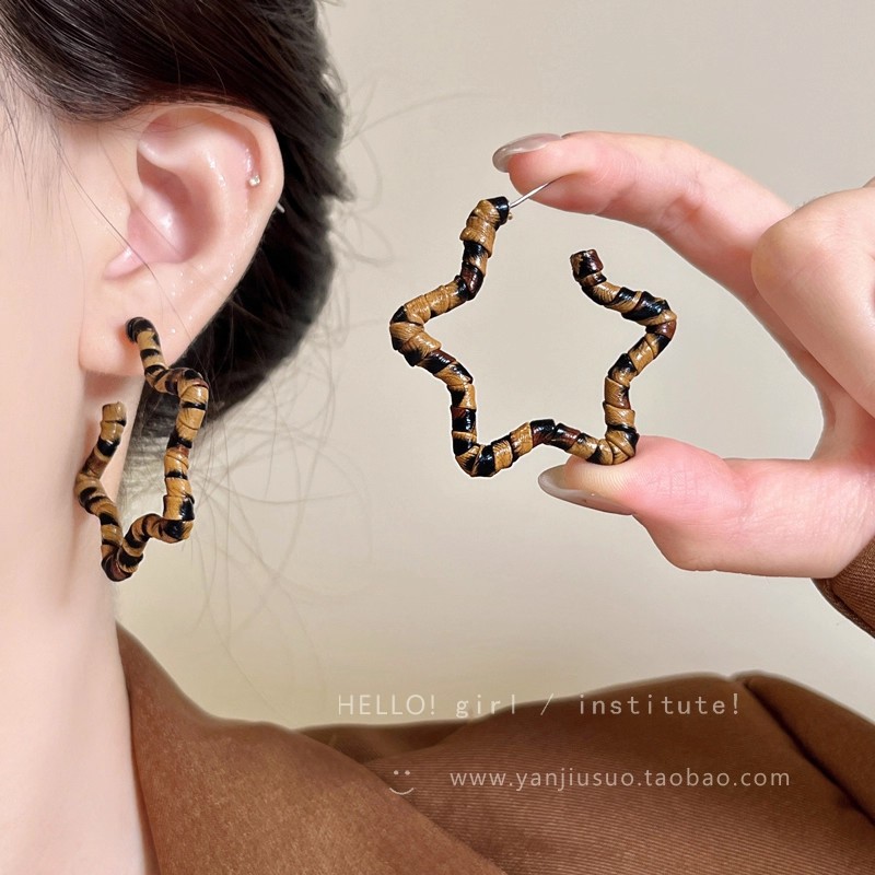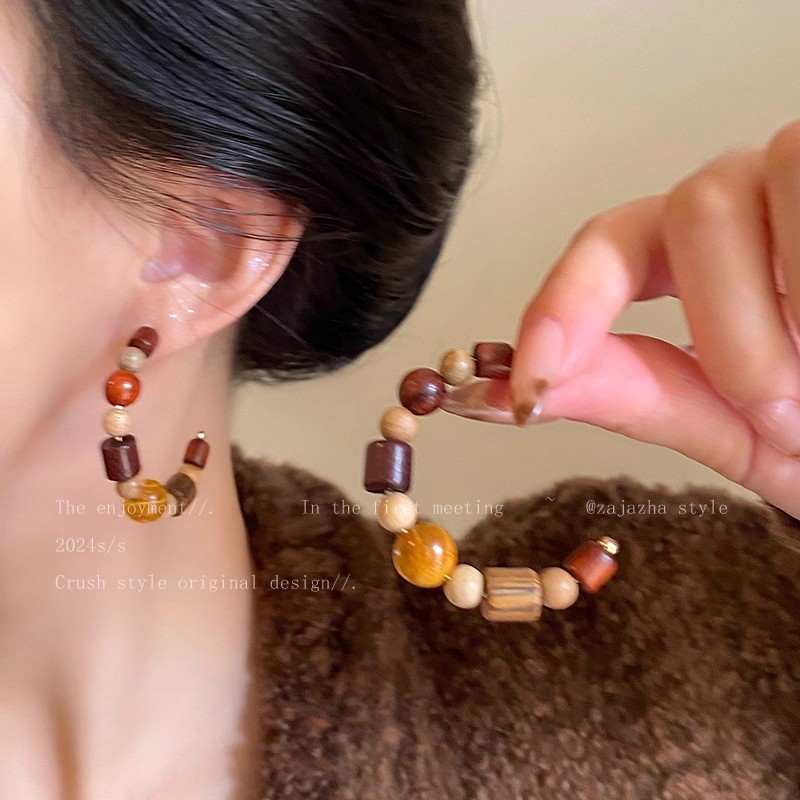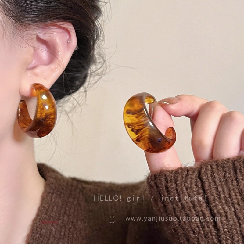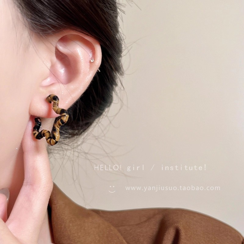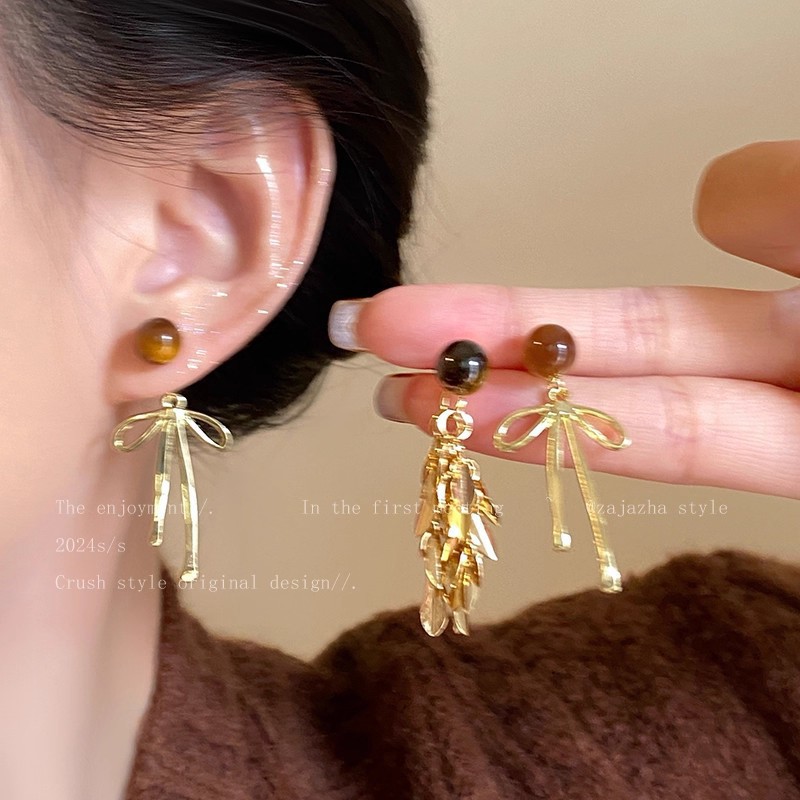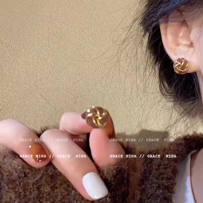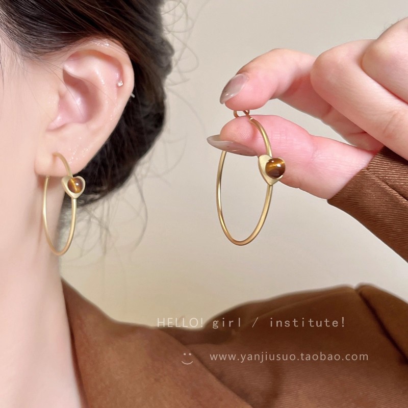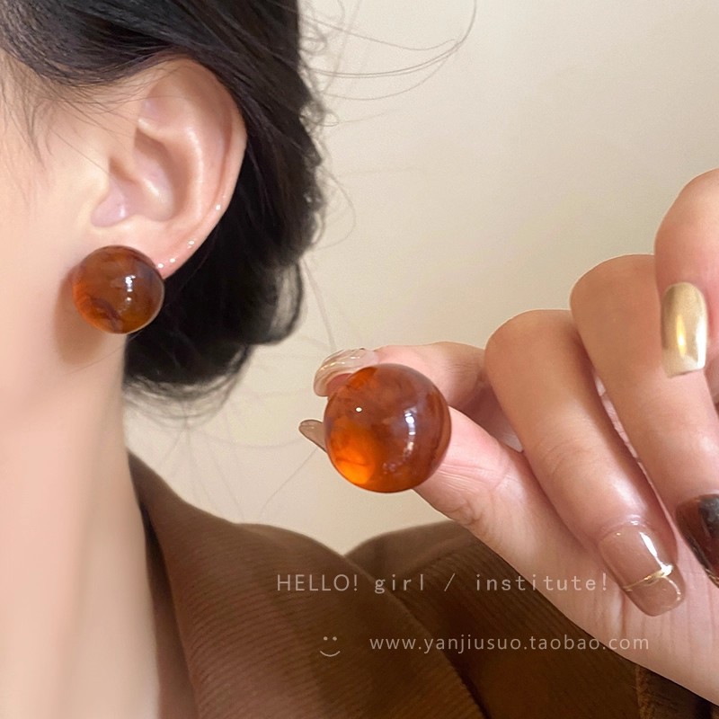 Hoa Tai Maillard Màu cà phê mẫu thu đông năm 2025 nữ phong cách Hồng Kông cổ điển thời trang khí chất hoa tai mắt Hổ Trang sức
