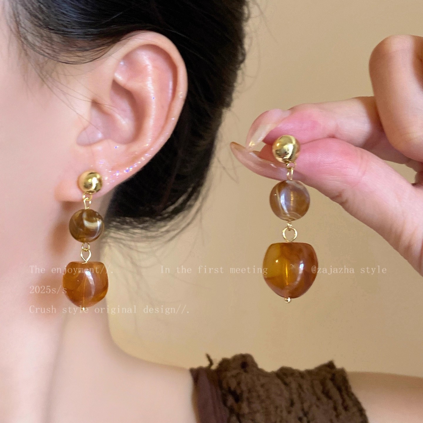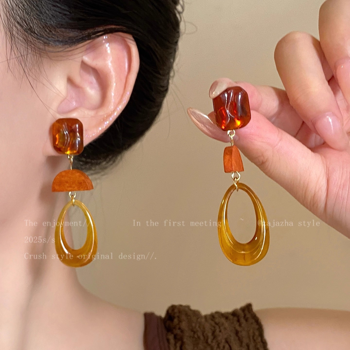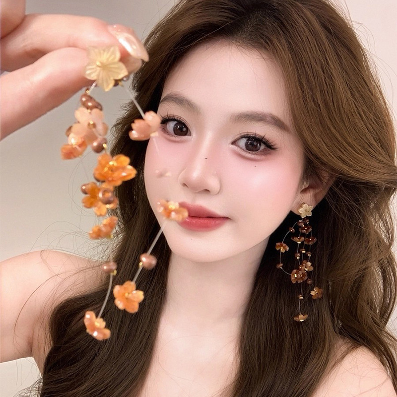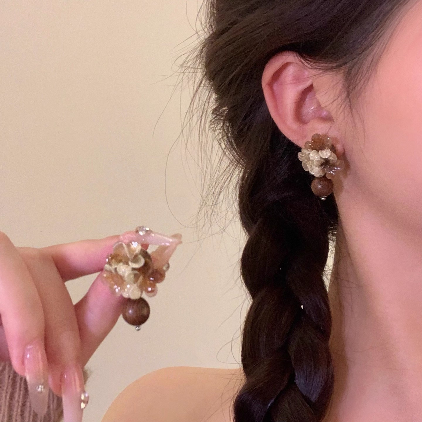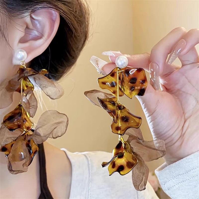 Hoa Tai Maillard Màu cà phê mẫu thu đông năm 2025 nữ phong cách Hồng Kông cổ điển thời trang khí chất hoa tai mắt Hổ Trang sức