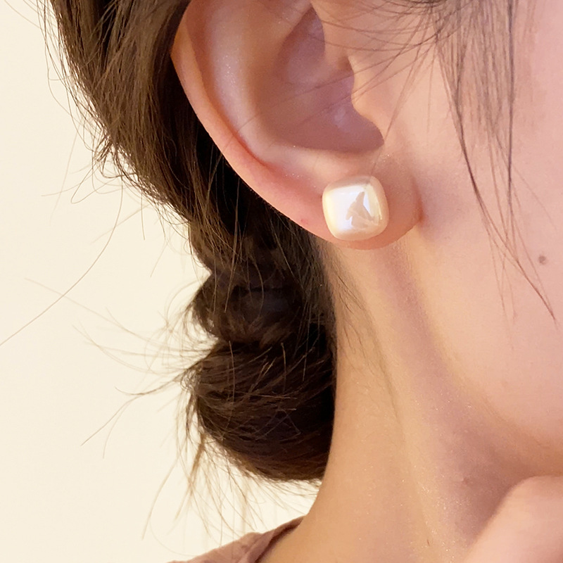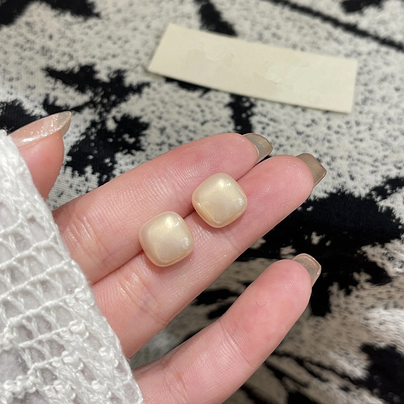 Hoa tai ngọc trai đường vuông đơn giản phong cách hot Hàn Quốc Hoa tai hình học khí chất đa năng sang trọng nhẹ hoa tai phong cách thơm nhỏ