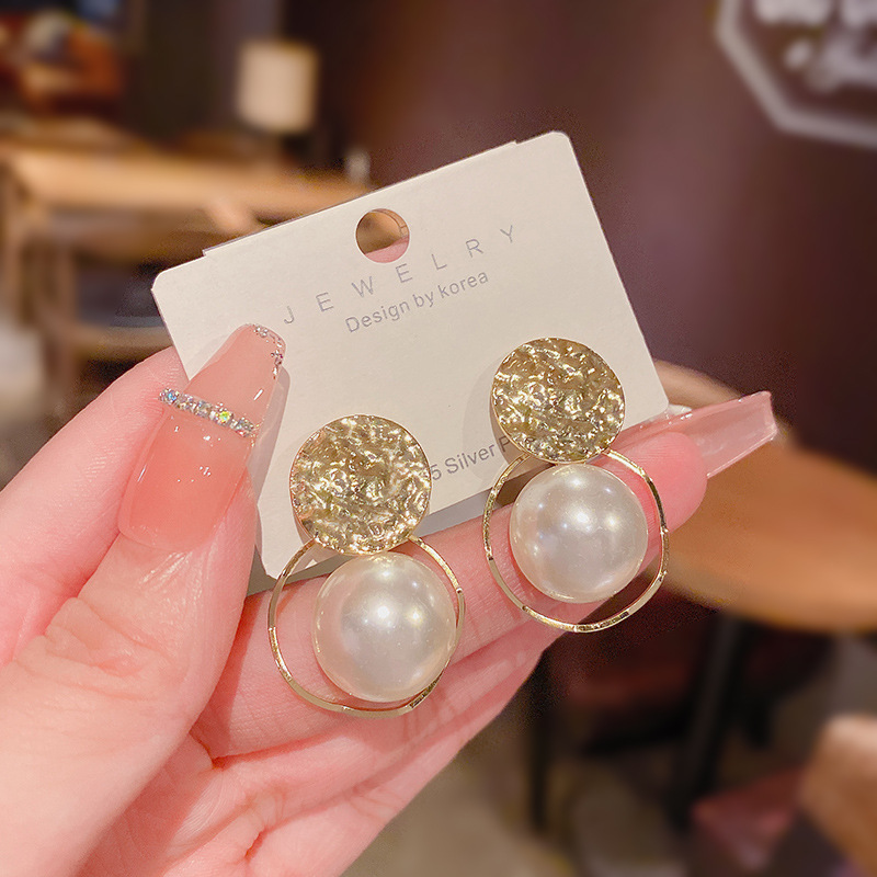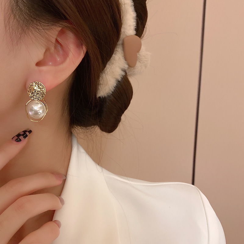 Hoa tai ngọc trai phong cách Baroque kim bạc S925 hoa tai nữ trang sức bông tai đính sequin khí chất siêu cổ tích hình học không đều