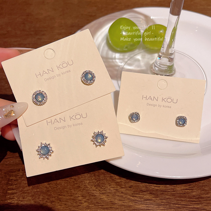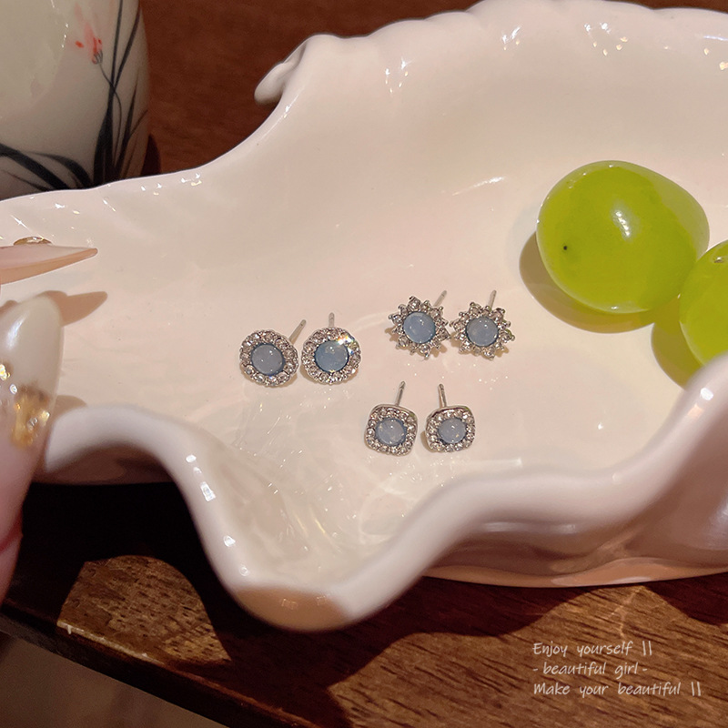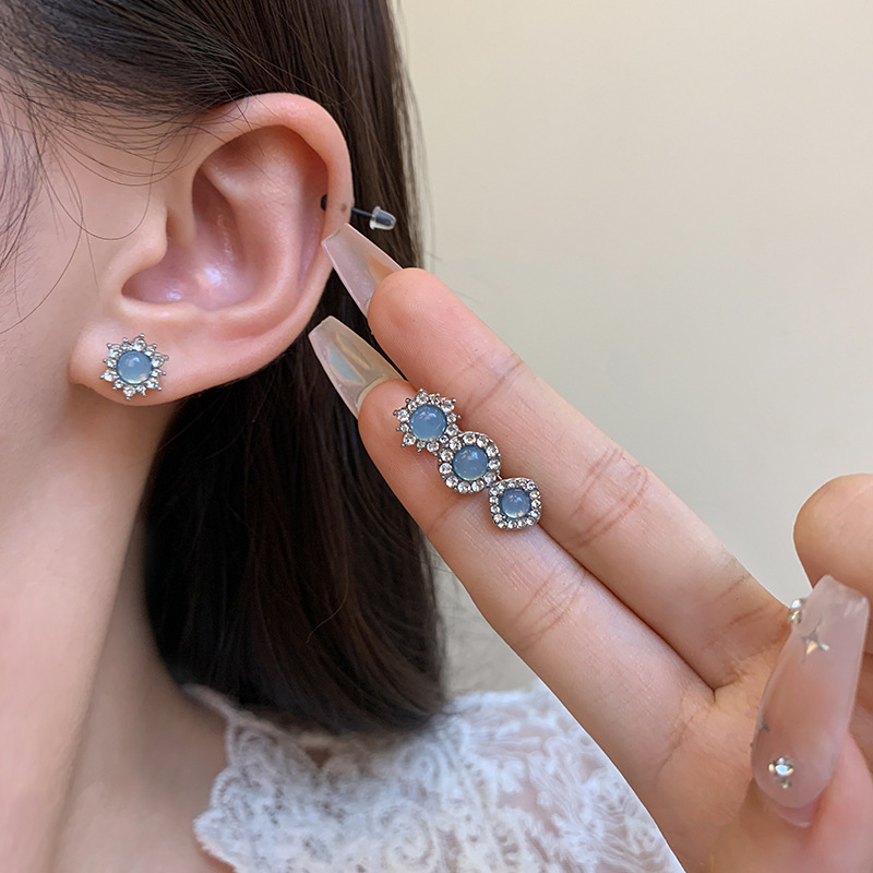 Hoa tai pha lê màu xanh tinh tế sang trọng cho nữ phong cách Hàn Quốc đơn giản dễ phối khí chất hình học đầy kim cương hoa tai