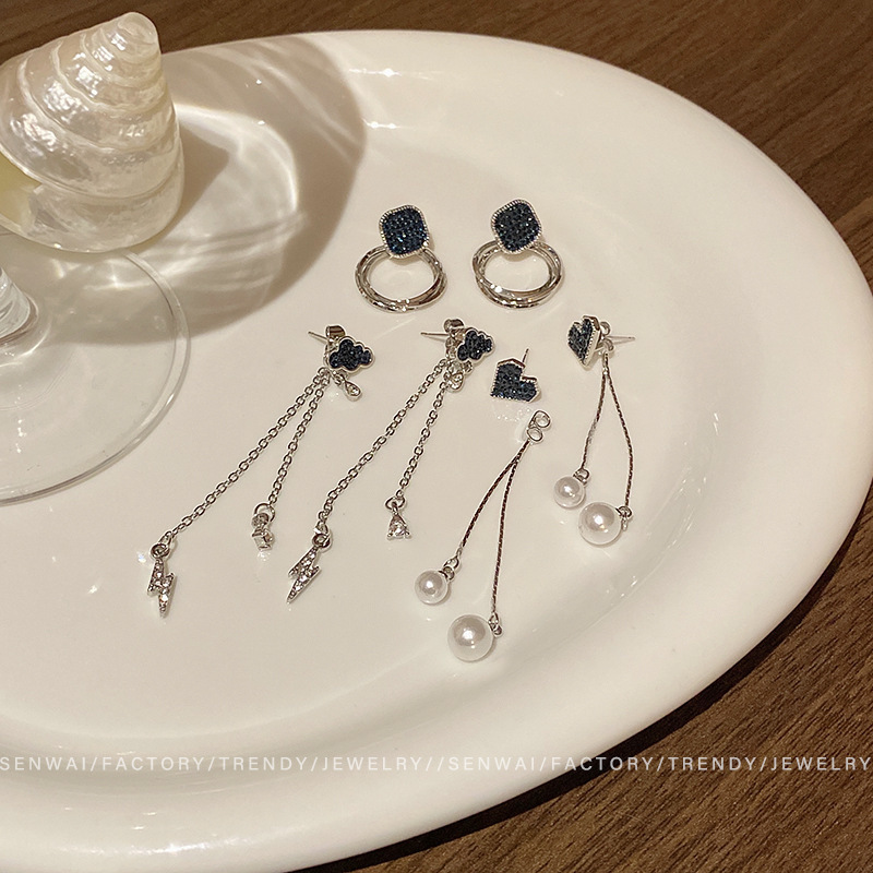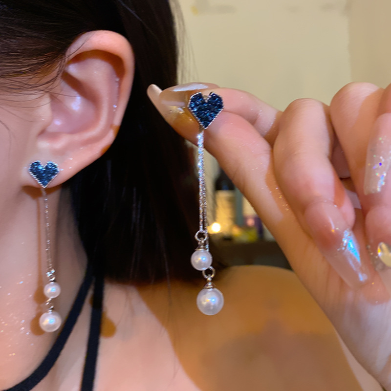 Hoa Tai Tình Yêu đám mây zircon màu xanh lam tua rua dài sang trọng