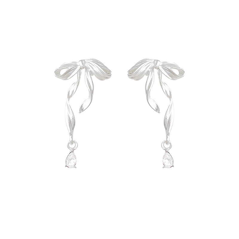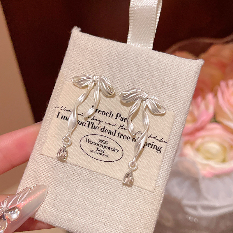 Hoa tai tua rua dài cảm giác thiết kế thích hợp kiểu Pháp Hoa tai Bông Tai Nơ Ruy băng trắng khí chất dễ phối