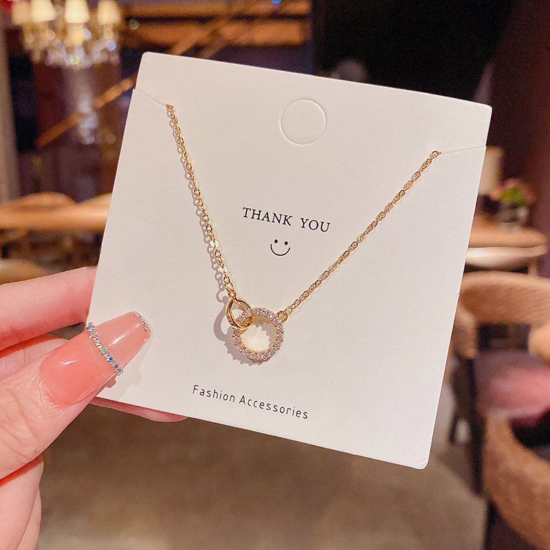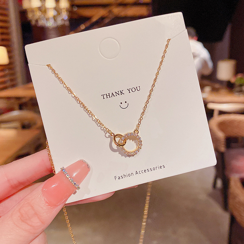 ins轻奢高级设计感钛钢项链女时尚气质双圆圈镶钻超仙吊坠锁骨链