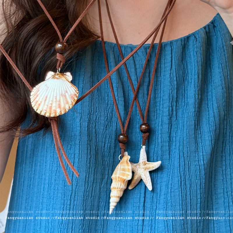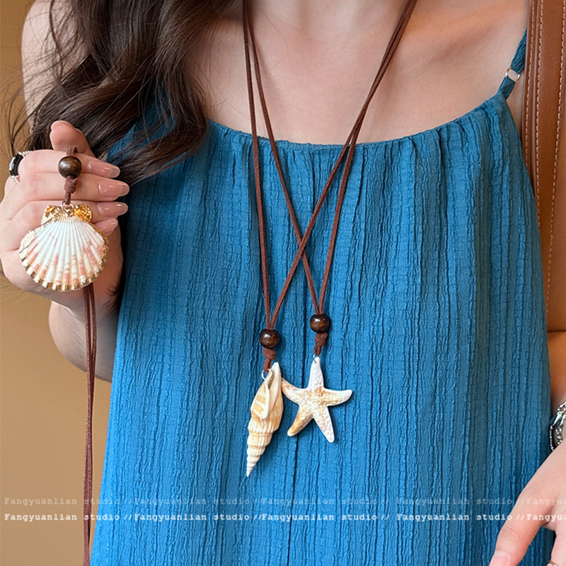 Island Holiday Phong Cách Sao biển Vòng cổ vỏ sò nữ thời trang ngách dễ phối khí chất phong cách Bohemian Dây chuyền xương đòn dài
