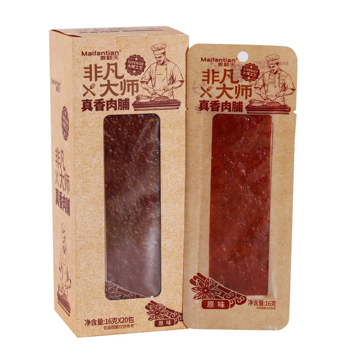 Thịt khô nguyên bản 16 g/gói một hộp 20 gói