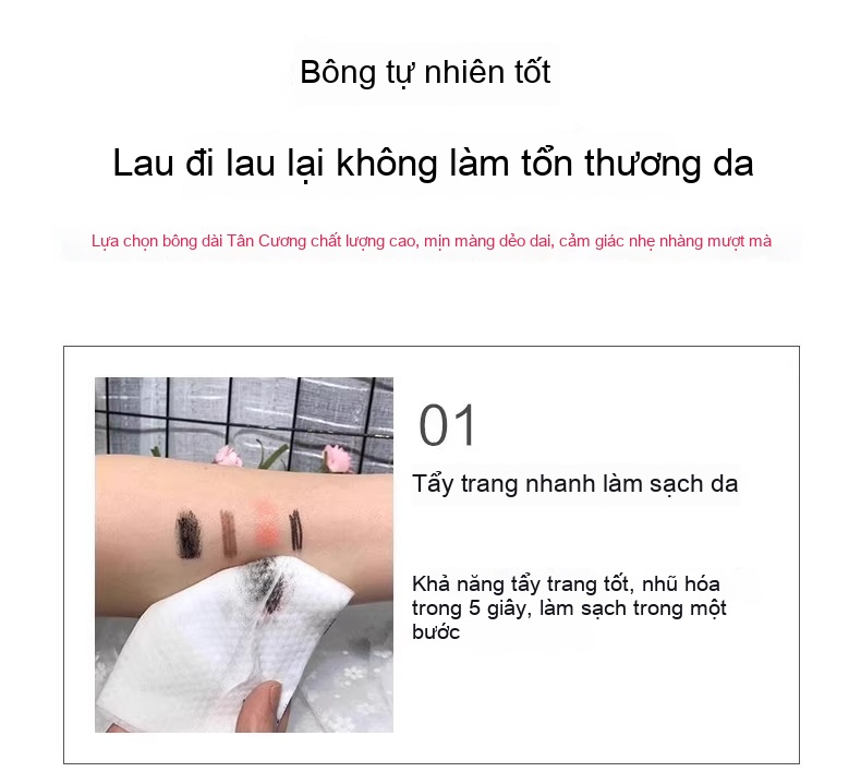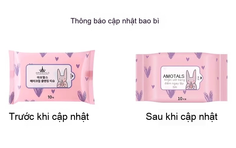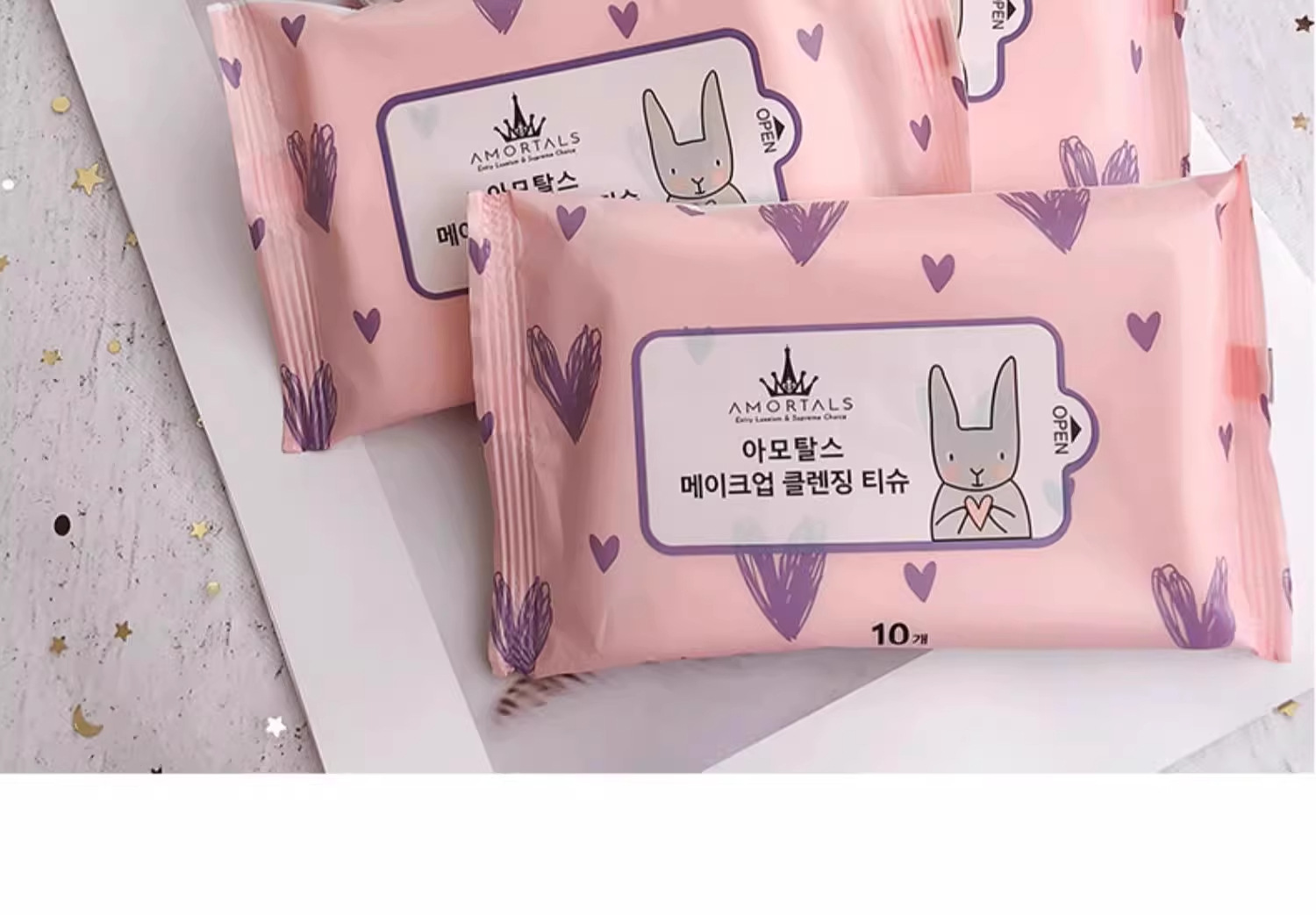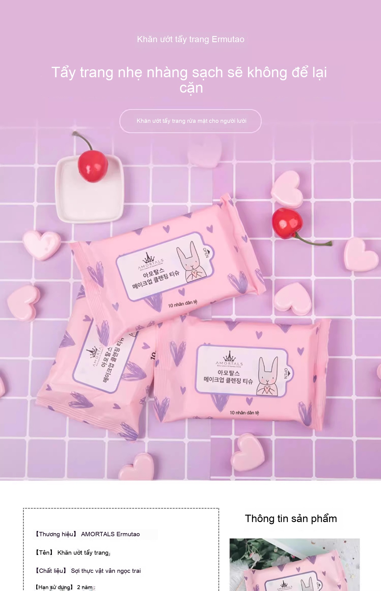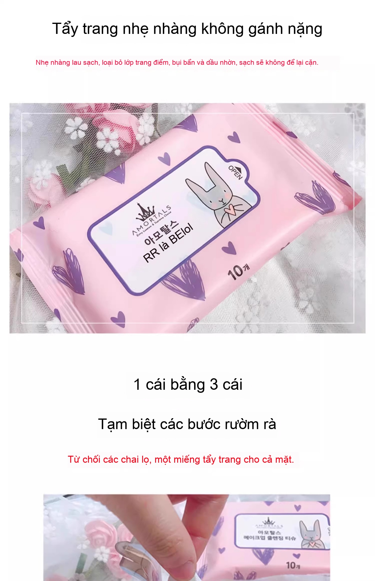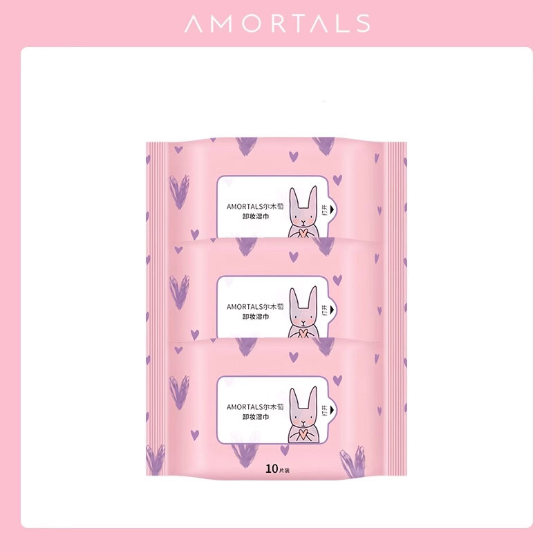 Khăn ướt tẩy trang amortals tẩy được cả mắt môi 10 miếng