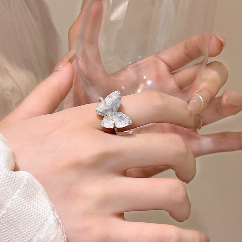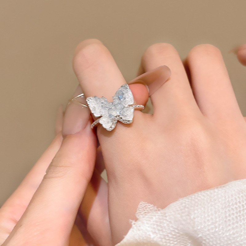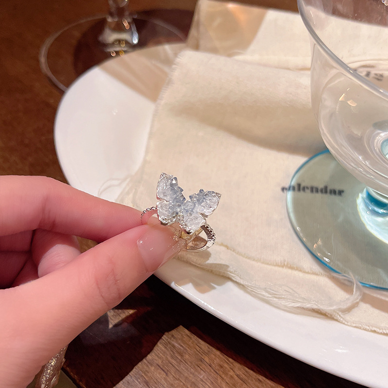 Khí chất ngọt ngào Hàn Quốc, Nhẫn Kim Cương vụn pha lê trong suốt, Nhẫn Ngón Tay Ăn kiêng có thể điều chỉnh độ cao của phụ nữ sang trọng nhẹ nhàng