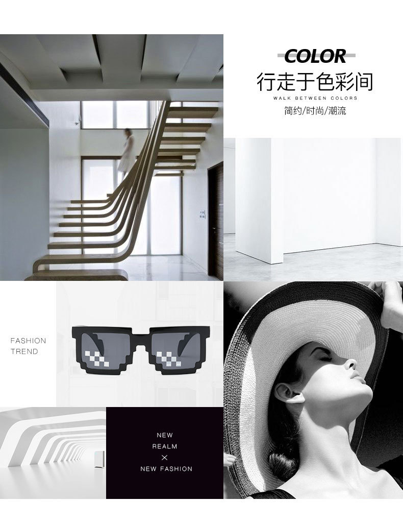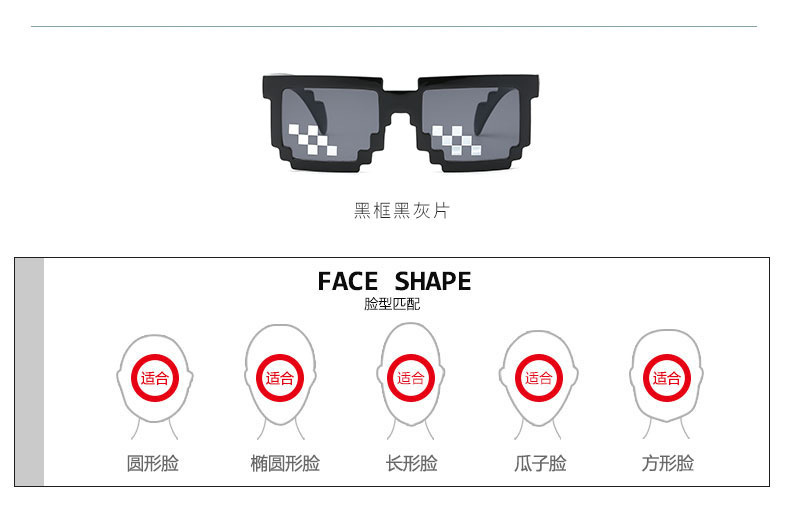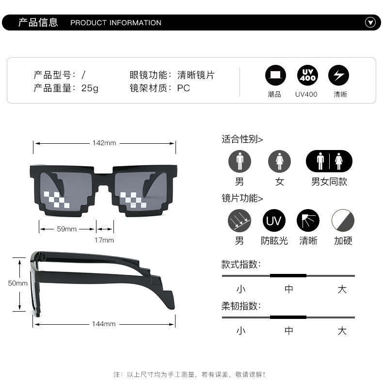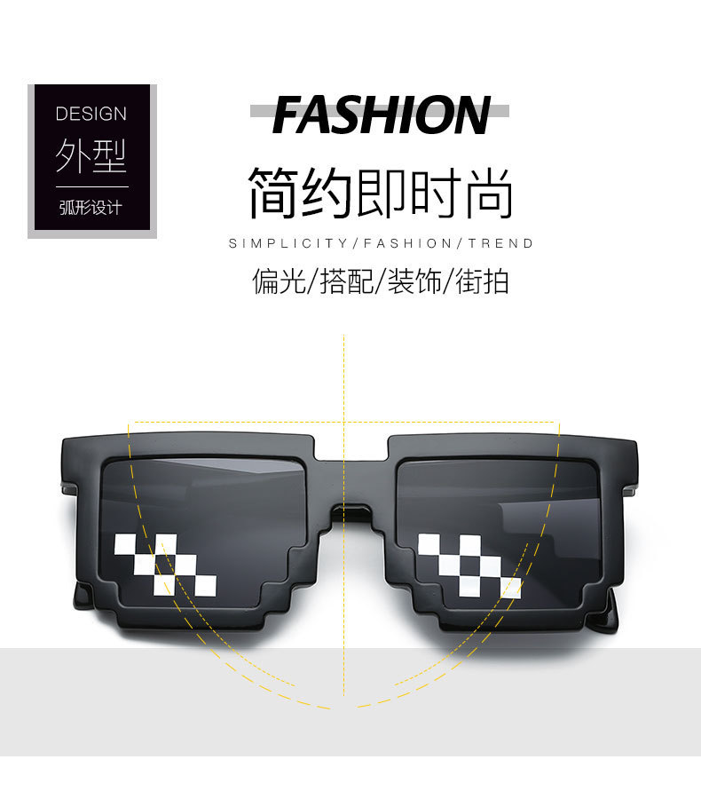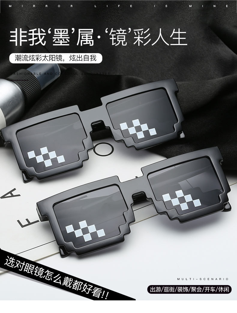 Kính khảm mã mới hai chiều tạo tác Kính râm mã hóa hình chữ nhật pixel Kính râm cá tính nổi tiếng trên mạng