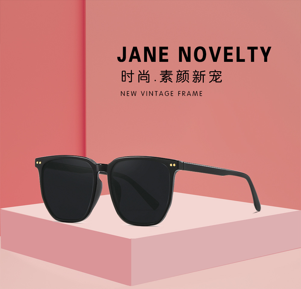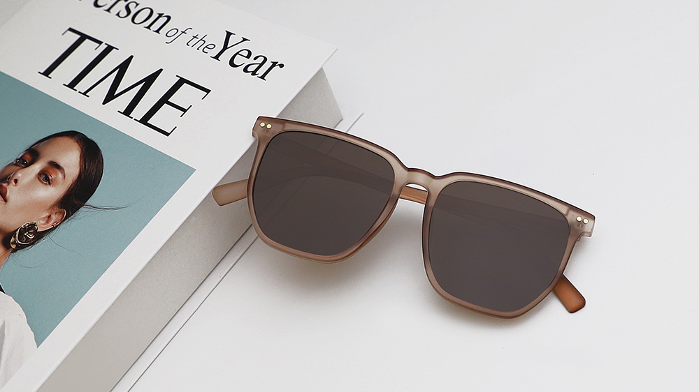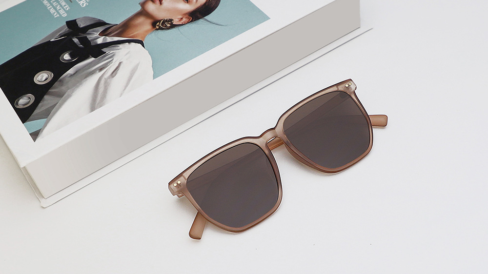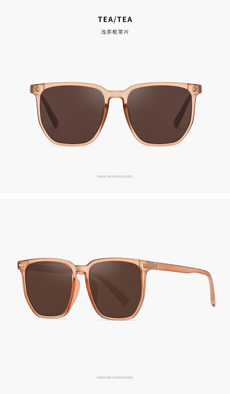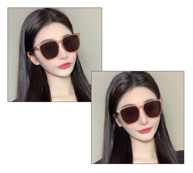 Kính má hồng mới Tik Tok Live Cùng một phong cách Gradient Màu Nâu Kính râm Kính râm phân cực gọng đen