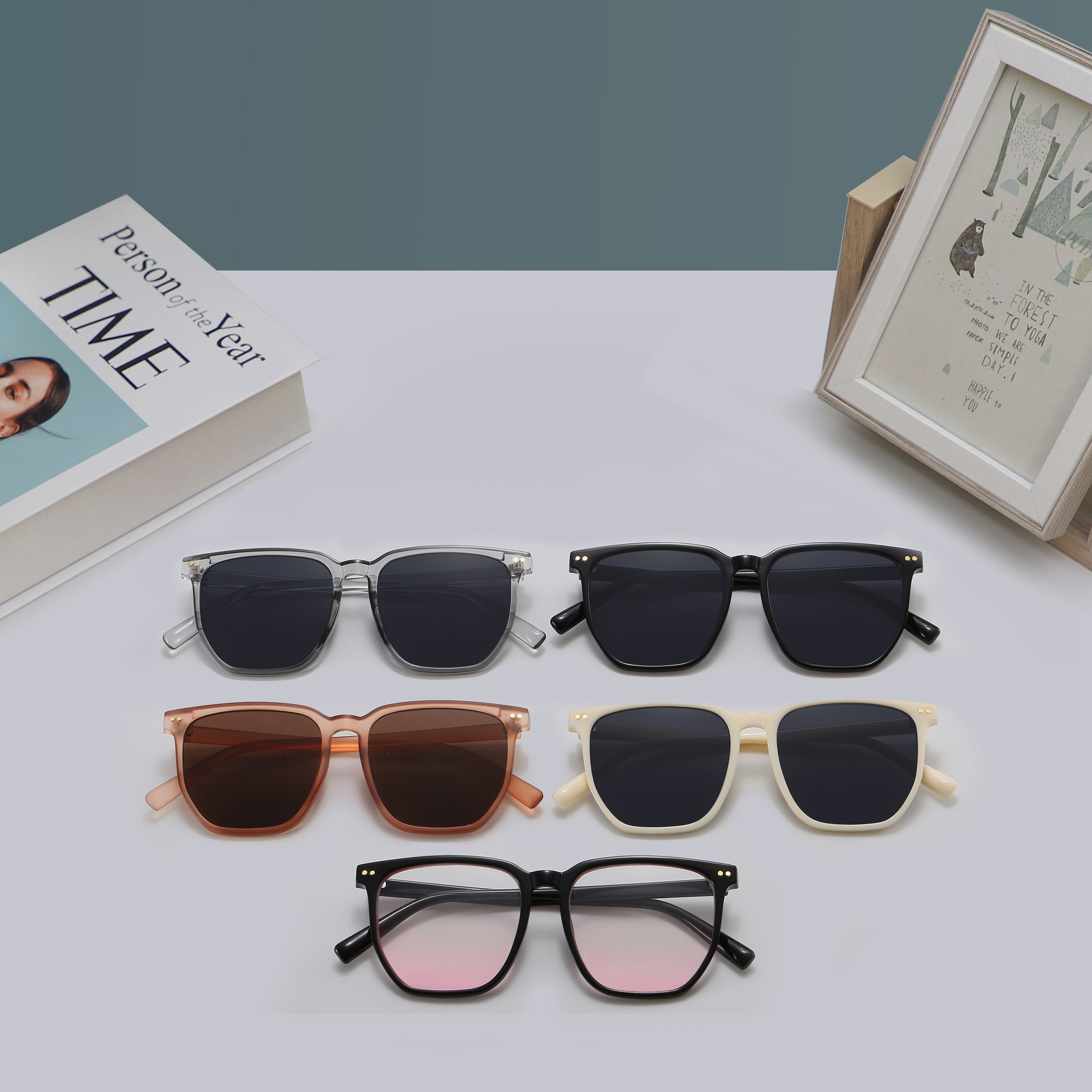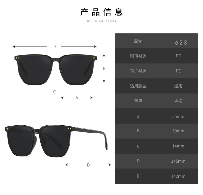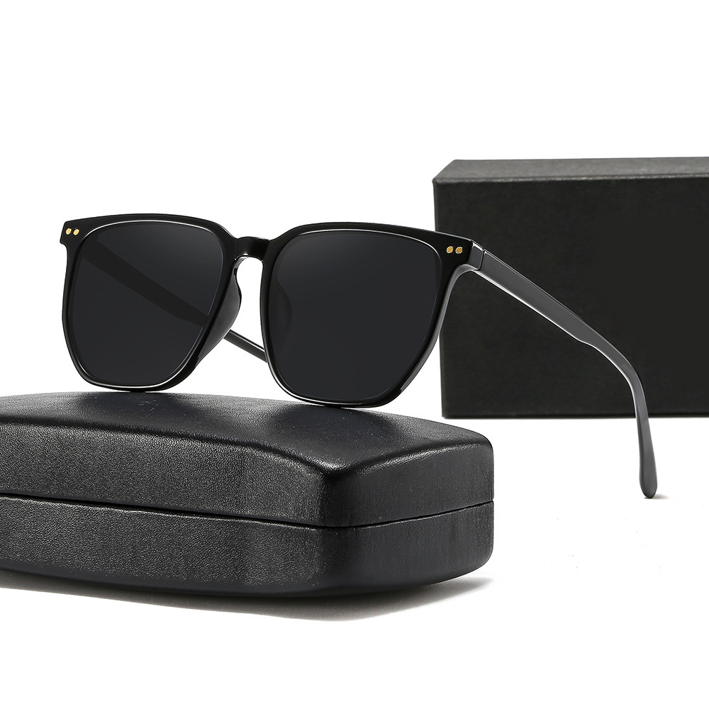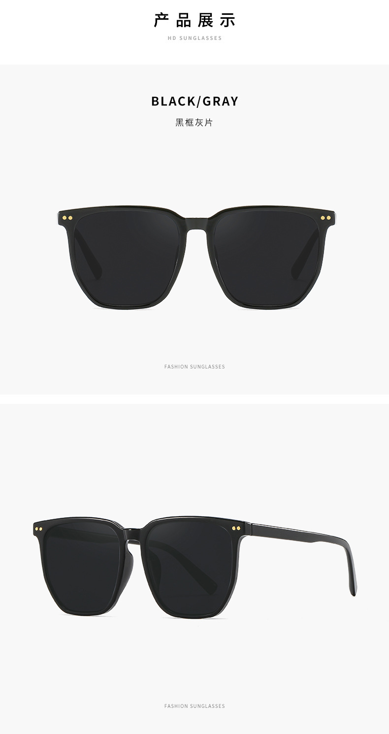 Kính má hồng mới Tik Tok Live Cùng một phong cách Gradient Màu Nâu Kính râm Kính râm phân cực gọng đen