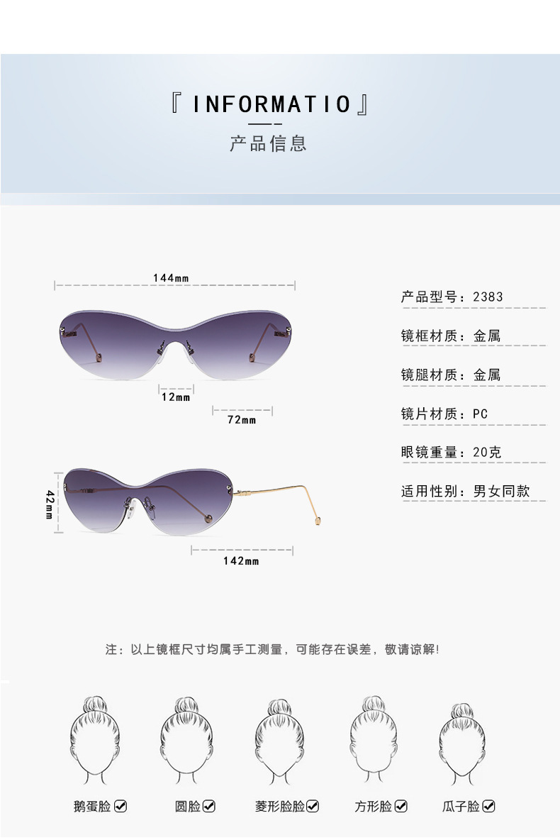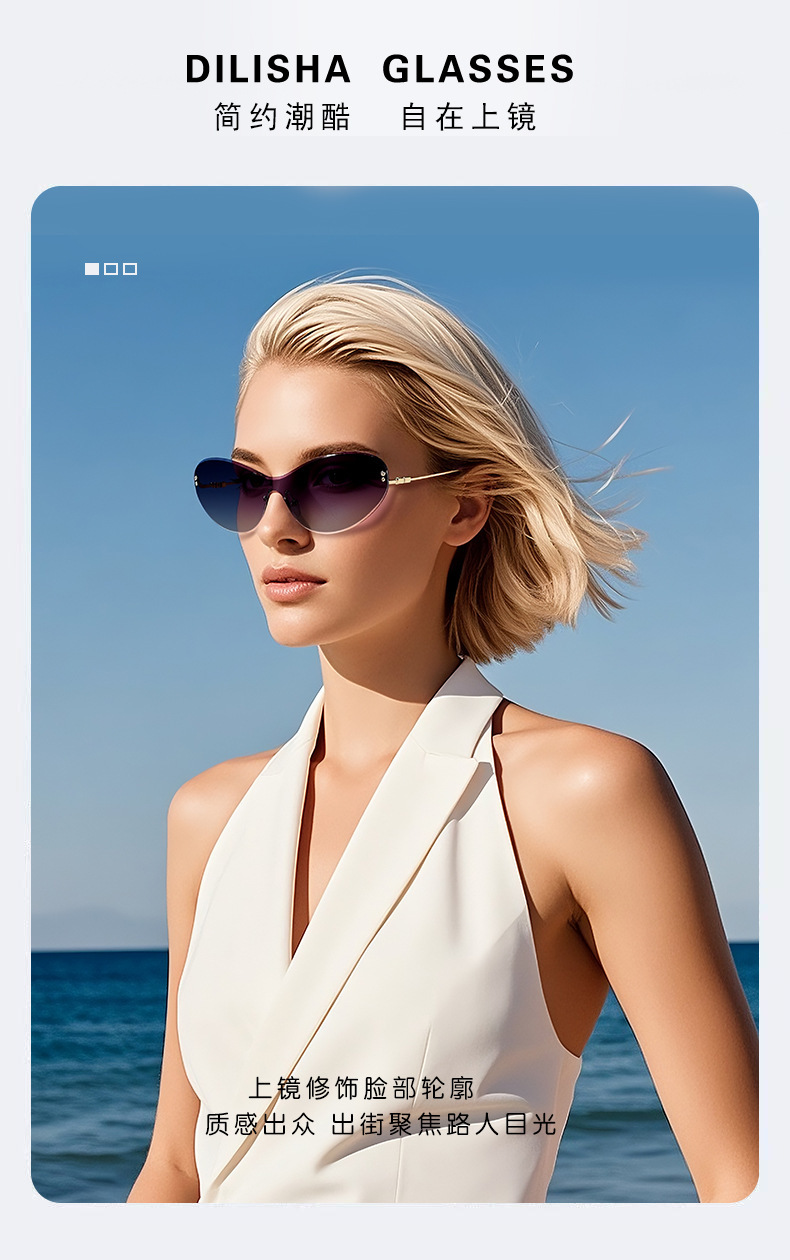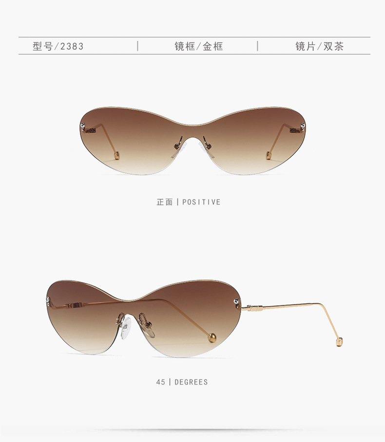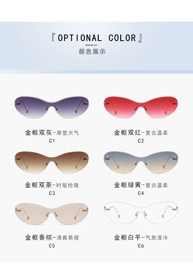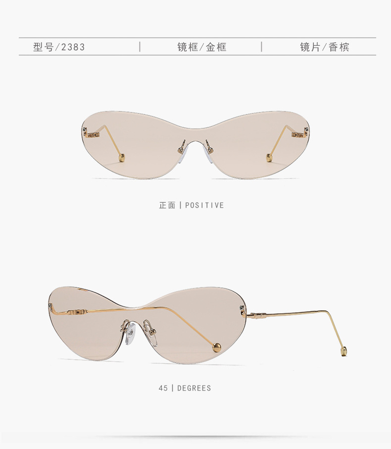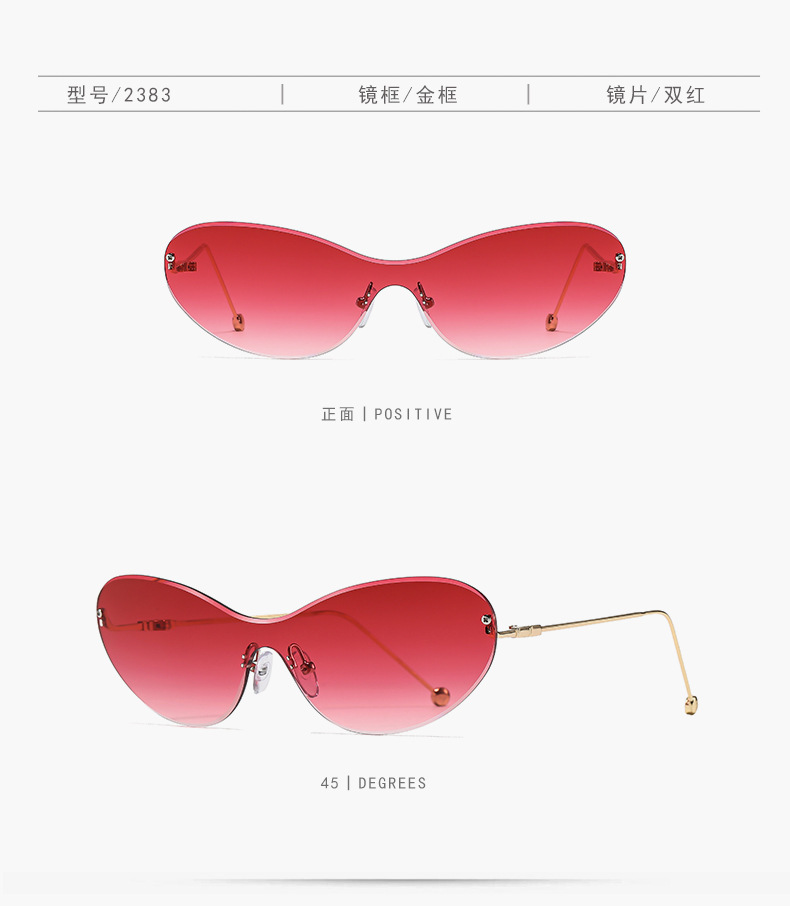 Kính râm Bướm Cá Tính cắt viền Âu Mỹ, kính râm Mắt mèo không khung mới Tik Tok, kính râm xuyên biên giới