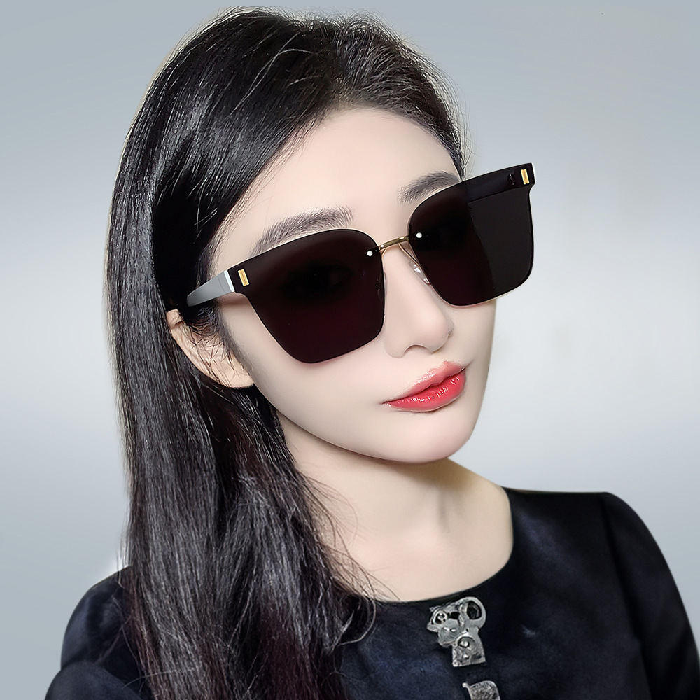 Kính râm không gọng mẫu mới Kính râm màu nâu chống tia cực tím Kính chống nắng cao cấp mùa hè cho nữ sunglasses