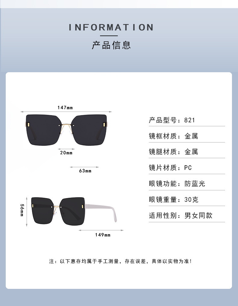 Kính râm không gọng mẫu mới nữ phong cách Hàn Quốc cao cấp phong cách cổ điển chống tia cực tím chống rung trực tiếp kính râm