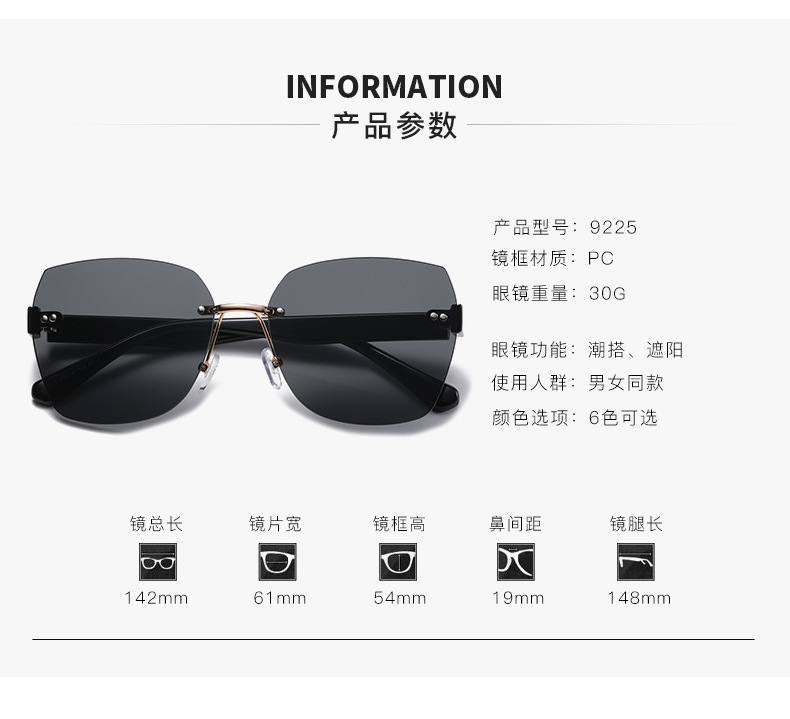 Kính râm không gọng mới, Kính râm Nữ, kính râm che nắng hợp thời trang, kính râm nổi tiếng trên mạng Douyin, phim đại dương Hàn Quốc