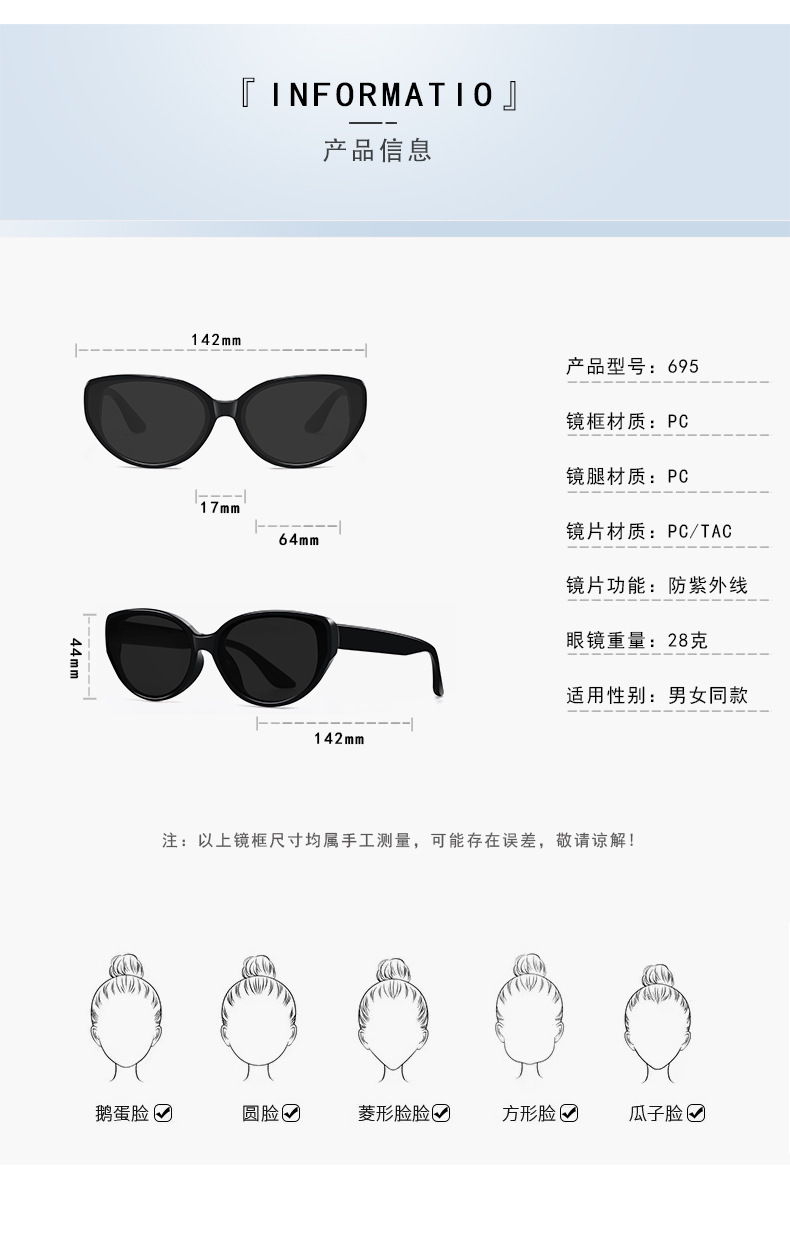 Kính râm Mắt mèo mới 2024 Kính râm phân cực của phụ nữ, mặt nhỏ, chống nắng, chống tia cực tím, Bán Buôn phát trực tiếp