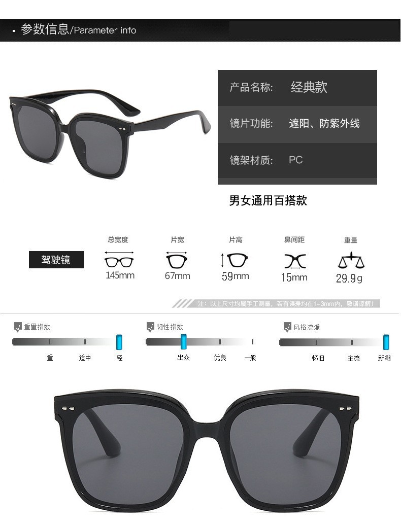 Kính râm mẫu mới Kính râm Nữ kính chống tia cực tím nam sành điệu kính râm lái xe chụp ảnh đường phố đinh gạo mỏng mặt to