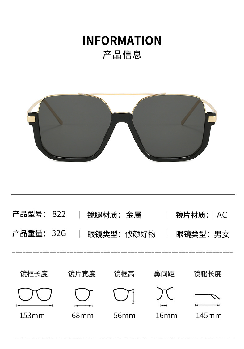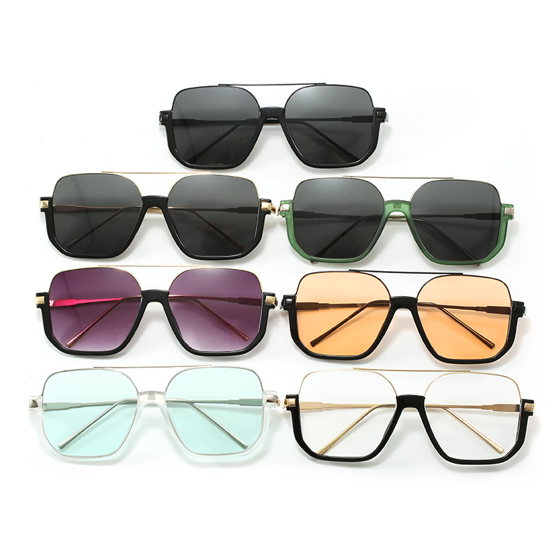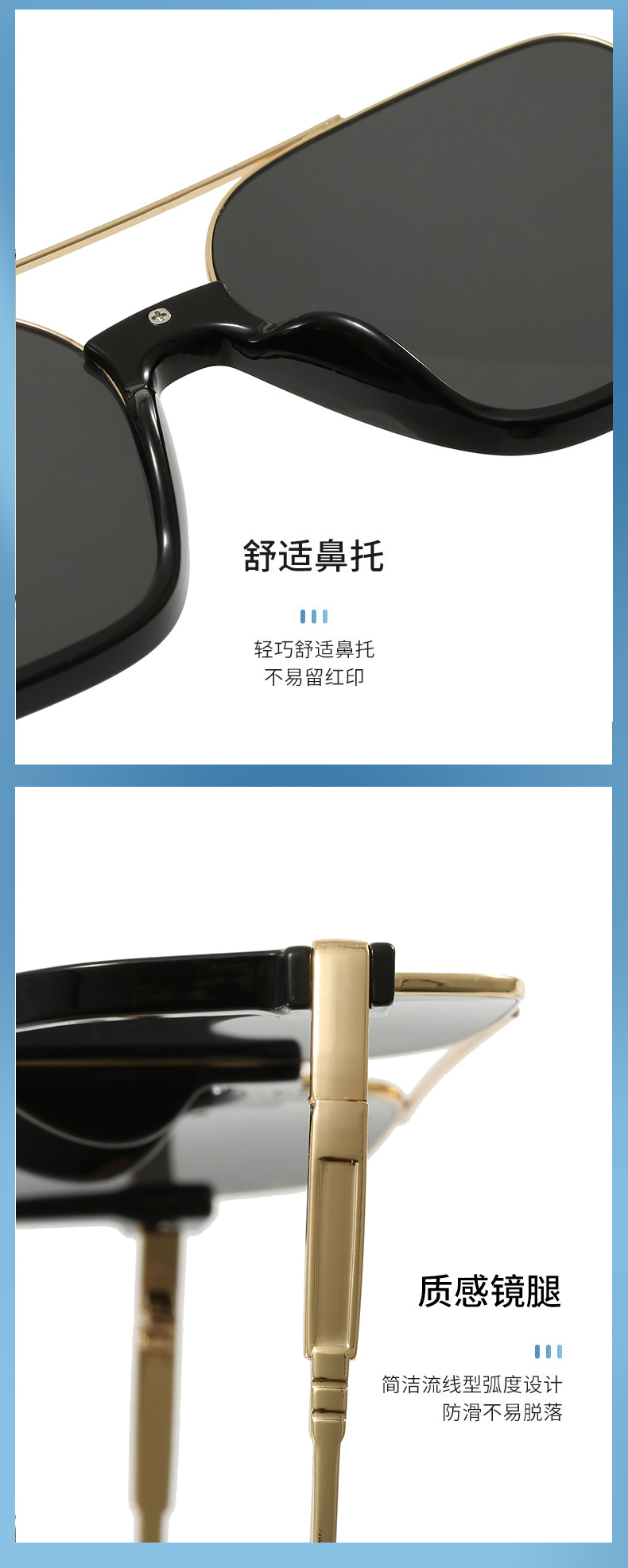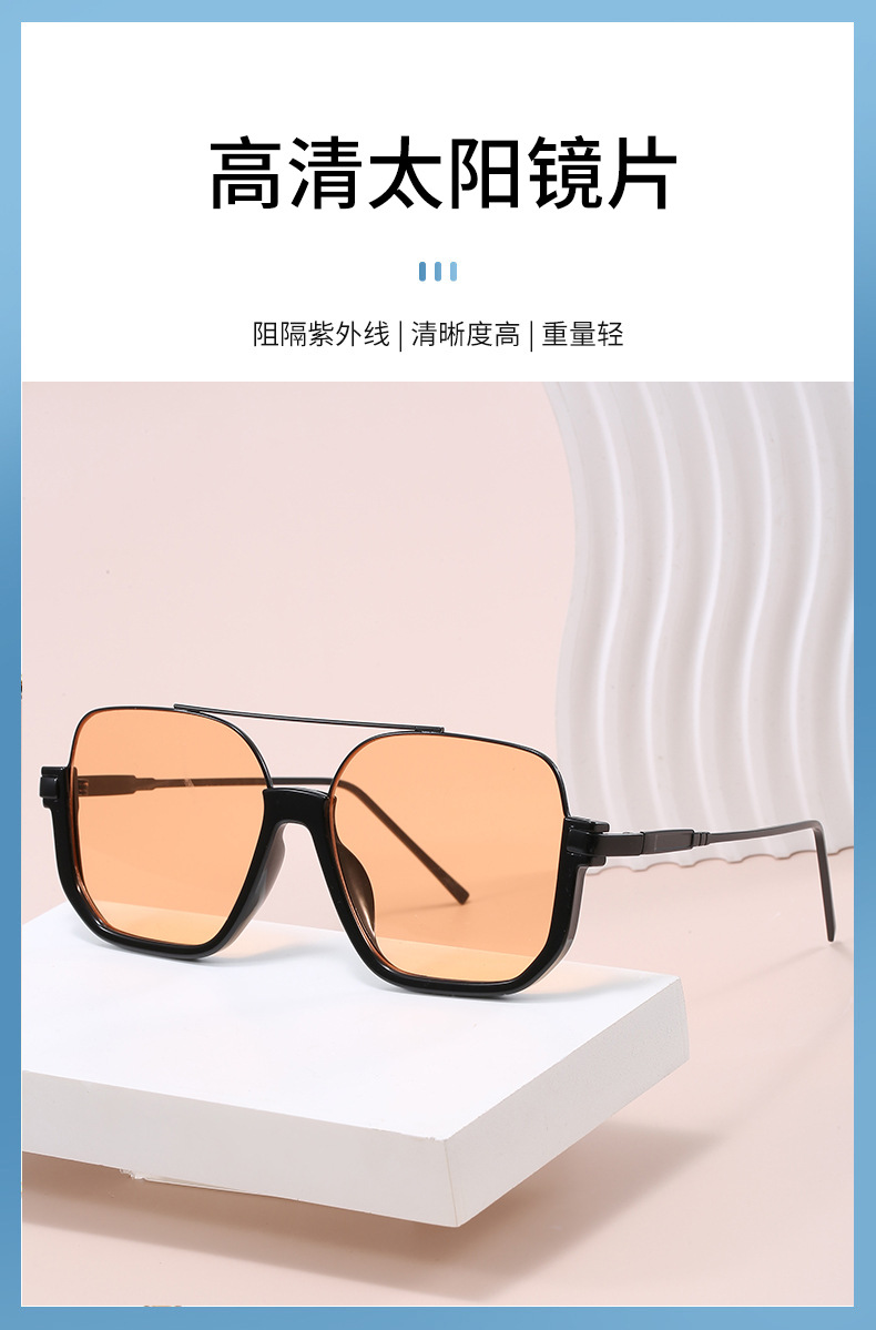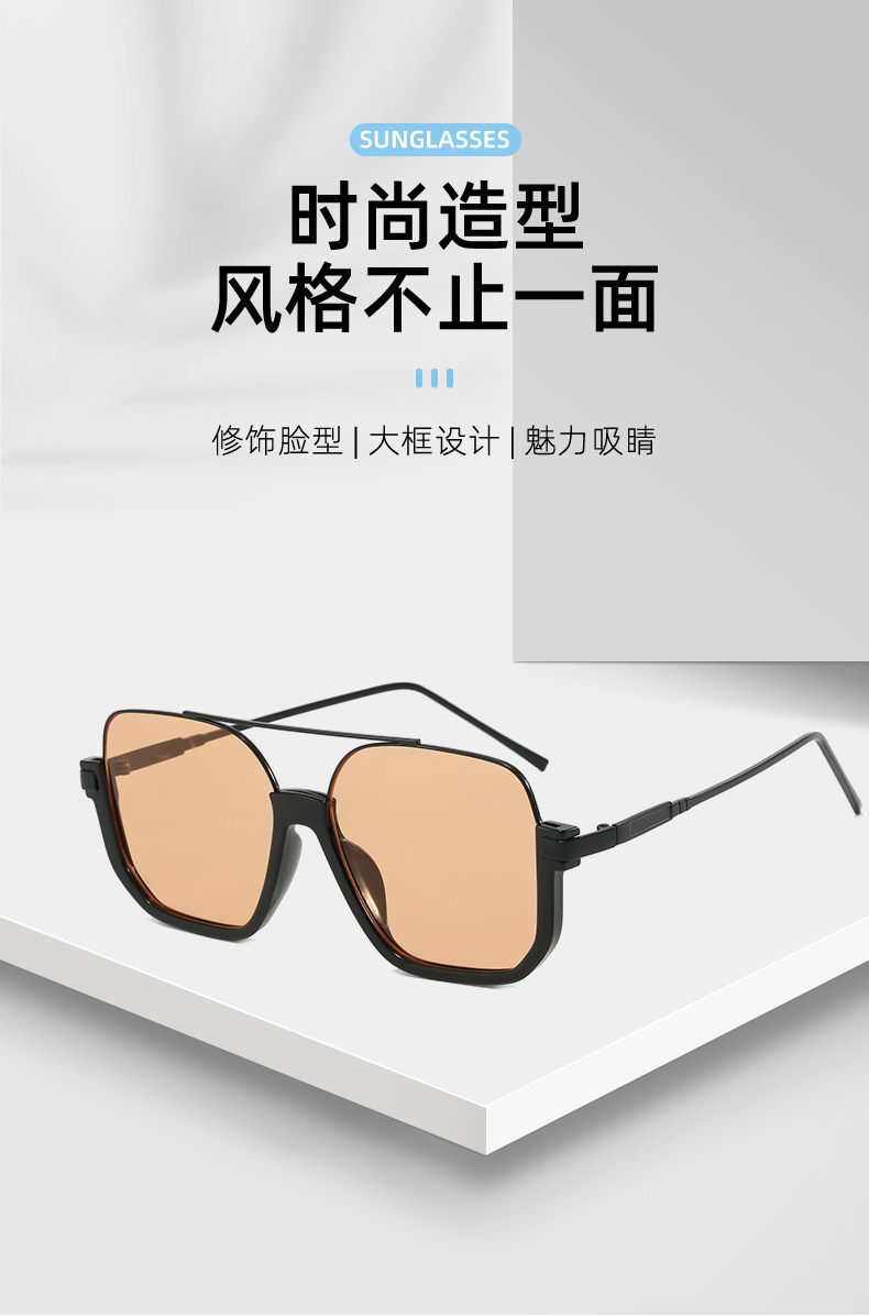 Kính râm mới 2024, gọng lớn, gương mặt gầy, kính râm hai chùm màu nâu, kính nam và nữ, kính râm trực tiếp Douyin