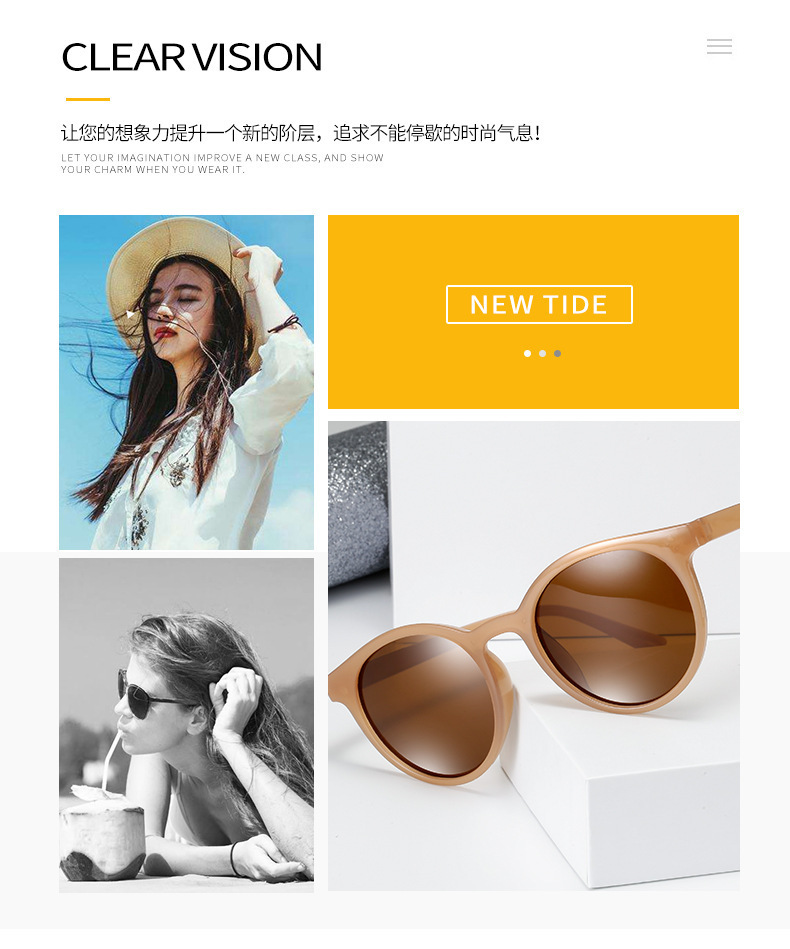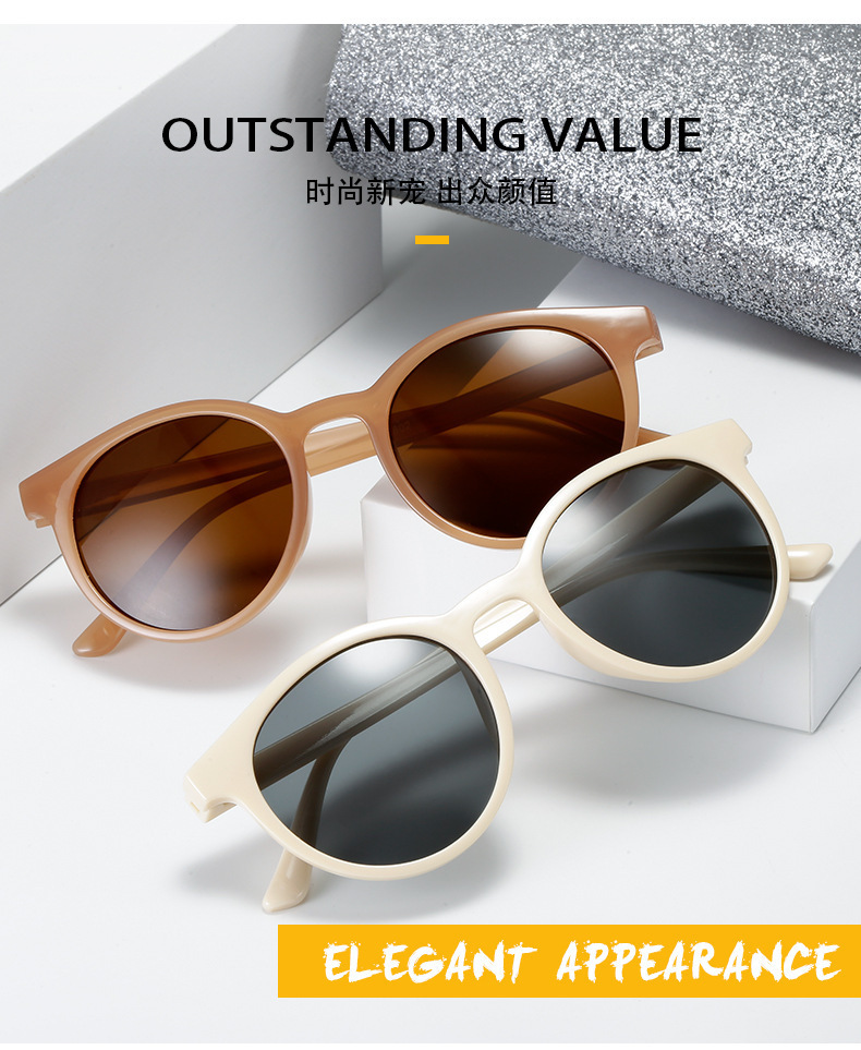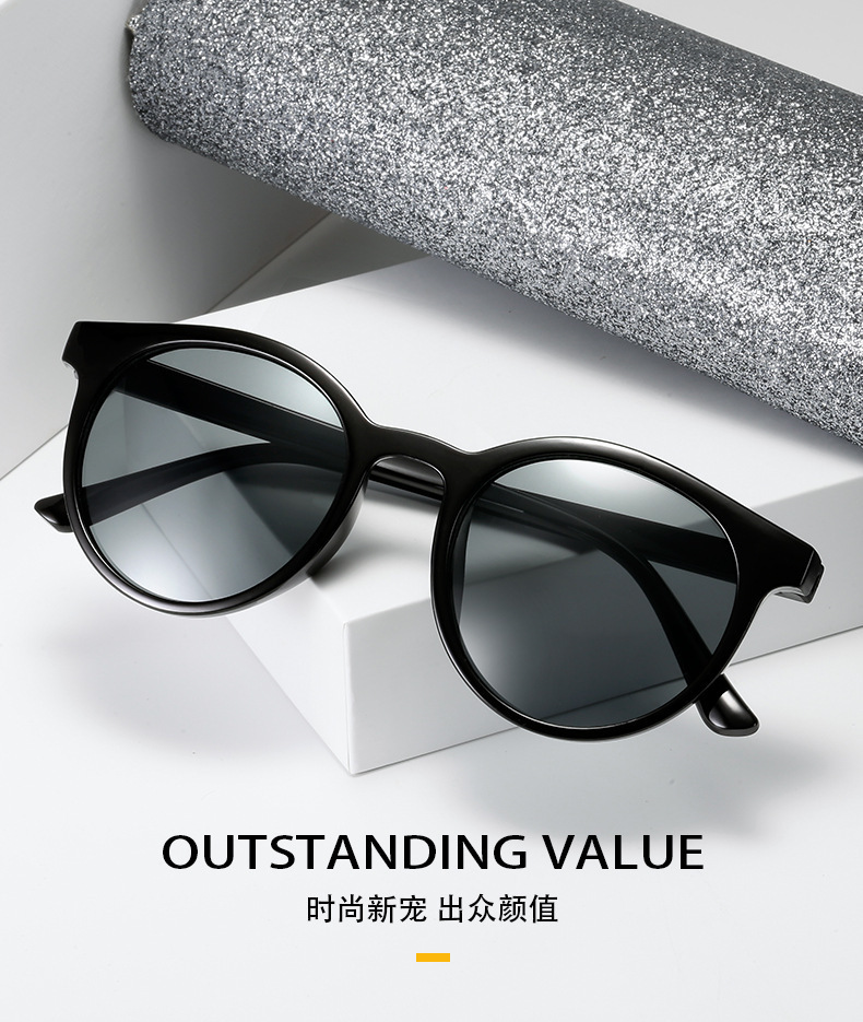 Kính râm mới nữ phong cách Hàn Quốc hợp thời trang khuôn mặt nhỏ ngôi sao cùng phong cách chụp ảnh đường phố Kính râm gọng tròn cổ điển chống tia cực tím không trang điểm