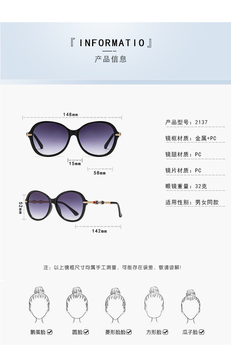 Kính râm nữ cao cấp thời trang xuyên biên giới Kính râm mặt to chống tia cực tím
