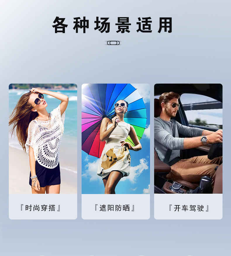 Các kịch bản áp dụng: Chống nắng, câu cá, du lịch, đạp xe, lái xe, biểu diễn trên sân khấu, tiệc tùng