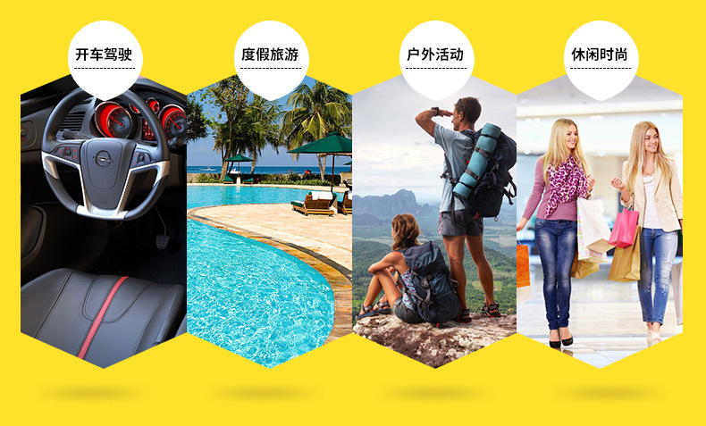 Các kịch bản áp dụng: chống nắng, câu cá, du lịch, thể thao ngoài trời, đạp xe, trang phục thời trang, lái xe, biểu diễn sân khấu, tiệc tùng