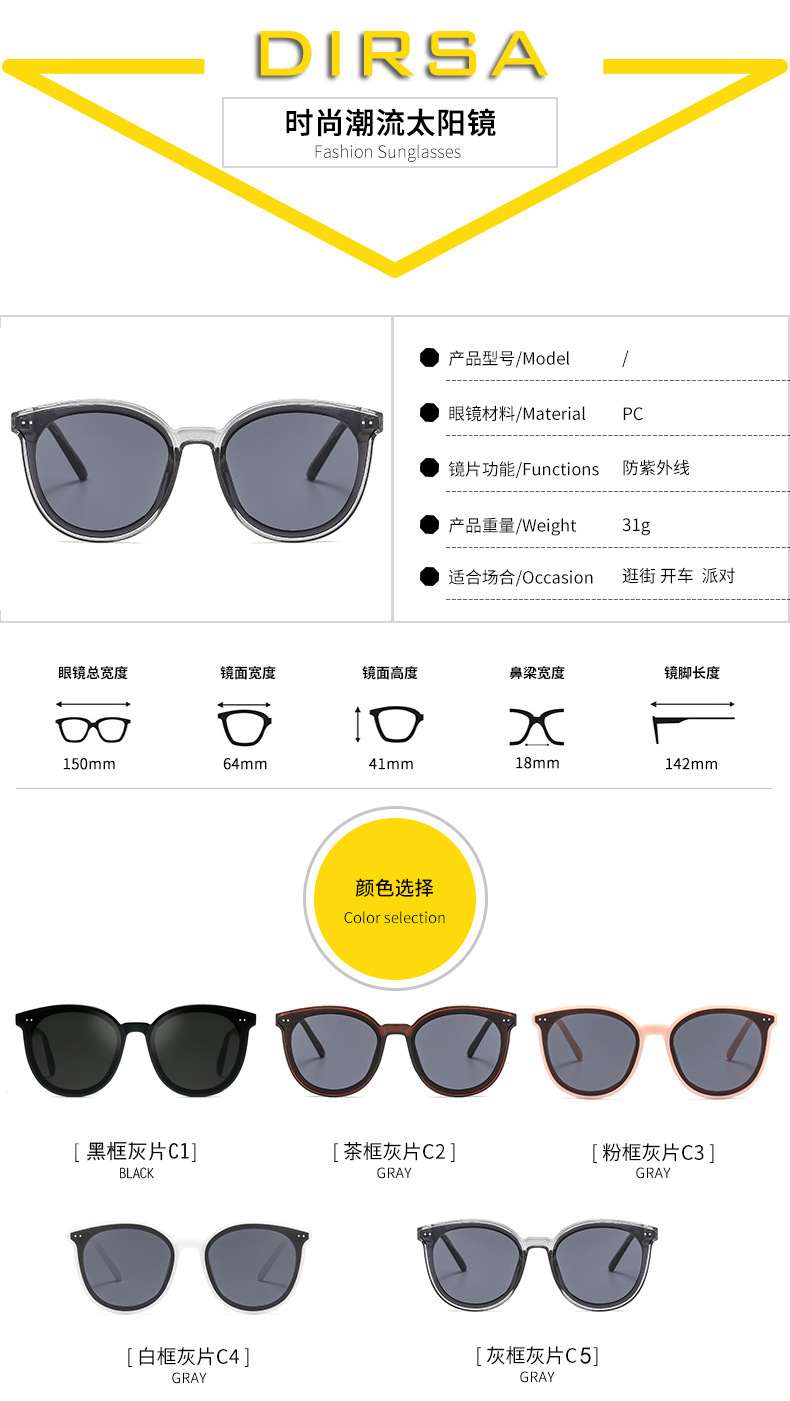 Kính râm xuyên biên giới Phiên bản Hàn Quốc nổi tiếng trên mạng Douyin phát trực tiếp Kính Râm Phân cực khung nhỏ Kính râm chống tia cực tím 1996