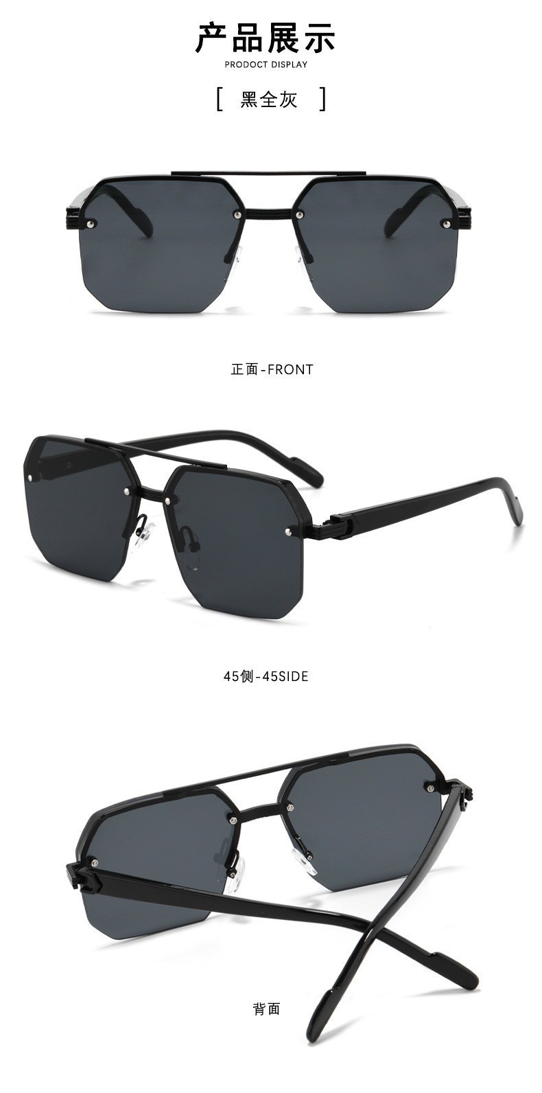Kính râm vuông ĐÔI HOT xuyên biên giới Douyin Âu Mỹ cá tính đơn giản nửa gọng phi công thời trang nam nữ