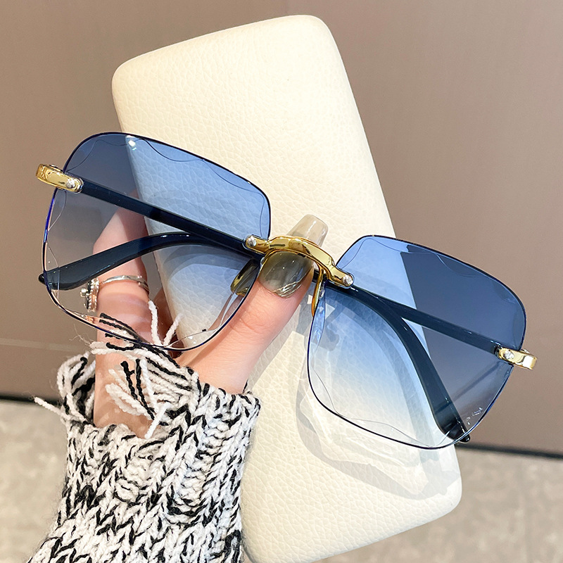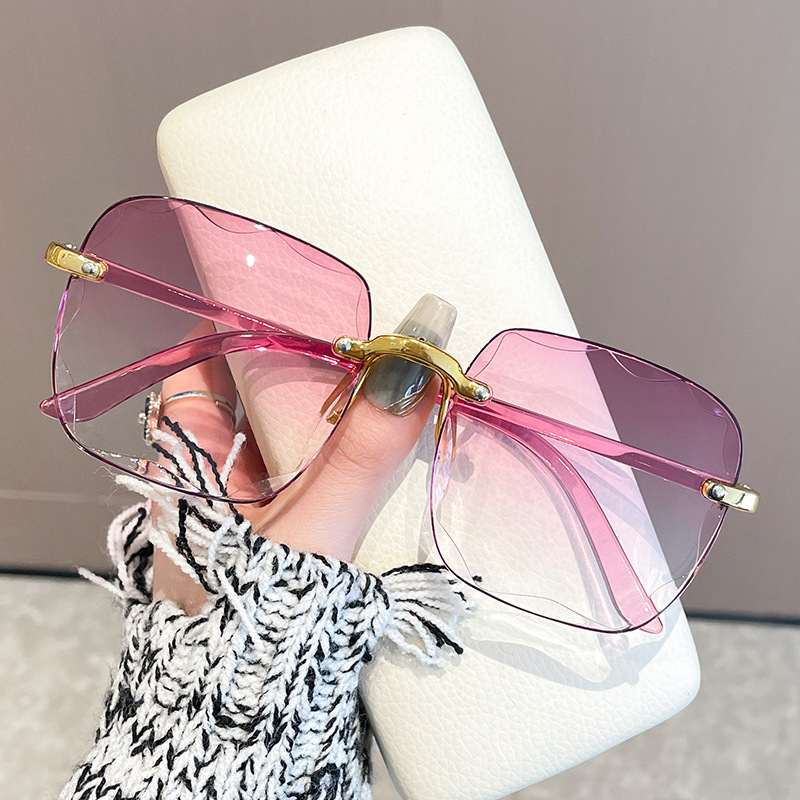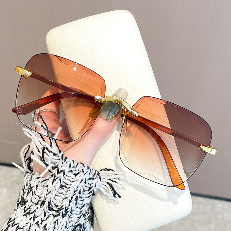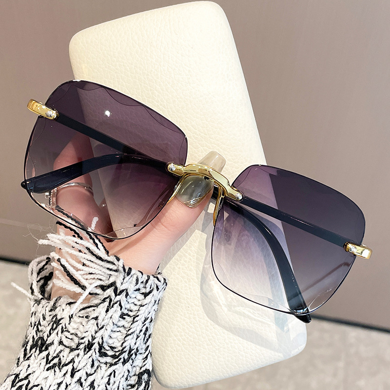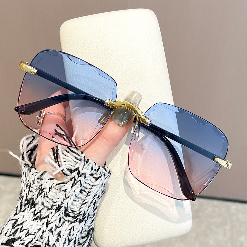 Kính râm vuông không gọng xuyên biên giới Kính râm Nữ giảm tuổi dần Kính râm nữ mùa hè không trang điểm đi chơi dễ phối đồ