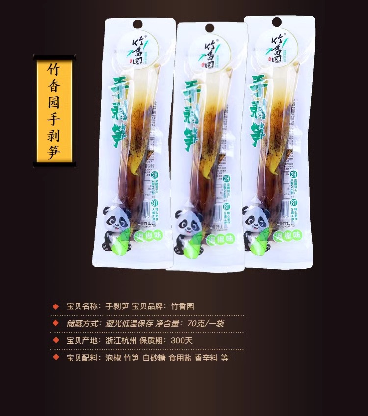 Măng bóc tay Zhuxiangyuan 70g/gói mở túi ăn ngay vị tiêu chua cay giòn măng 5 miếng