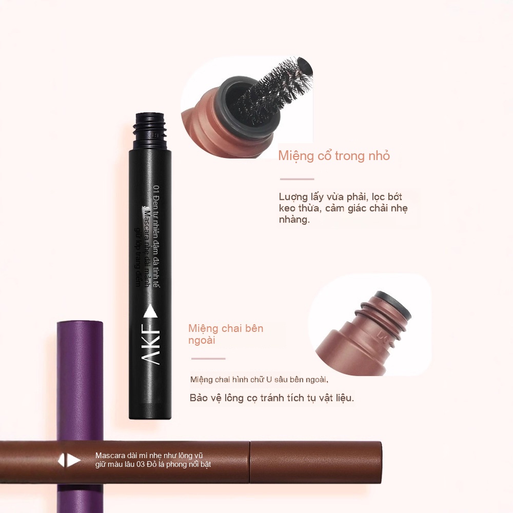 Mascara AKF, dài tự nhiên, dày và cong, màu sắc thông minh, kem lót đầu cọ mịn, màu đen đậm đà cho người mới bắt đầu