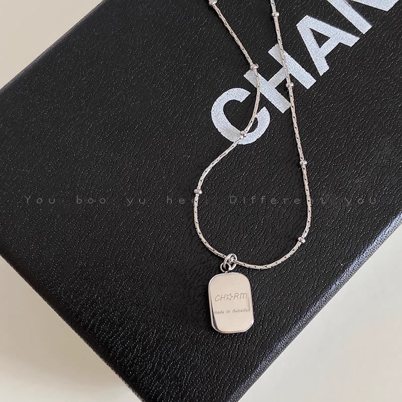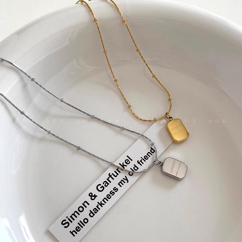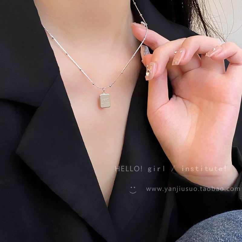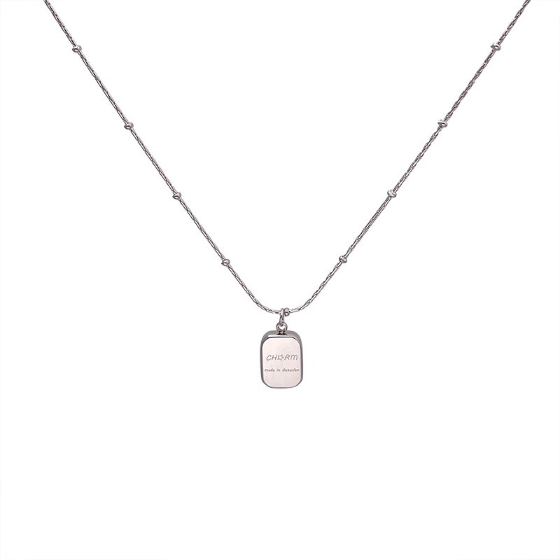 Mặt dây chuyền hình vuông nhỏ bằng thép Titan đơn giản sang trọng, Dây Chuyền Nữ Phong cách lạnh, Dây Chuyền xương đòn cảm giác kim loại, dây chuyền Áo len