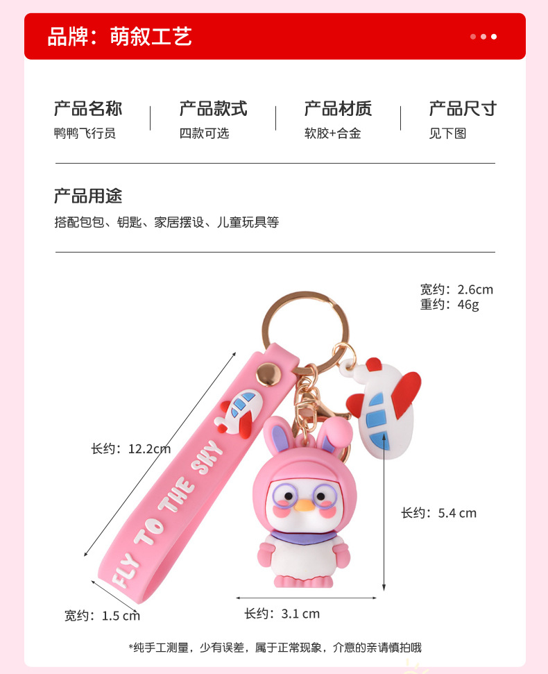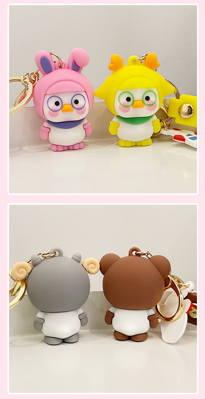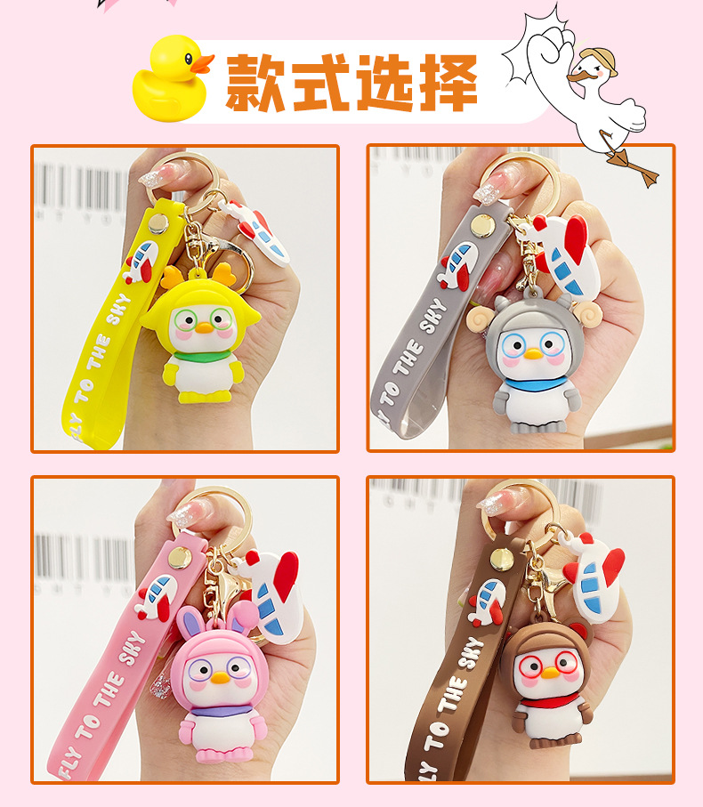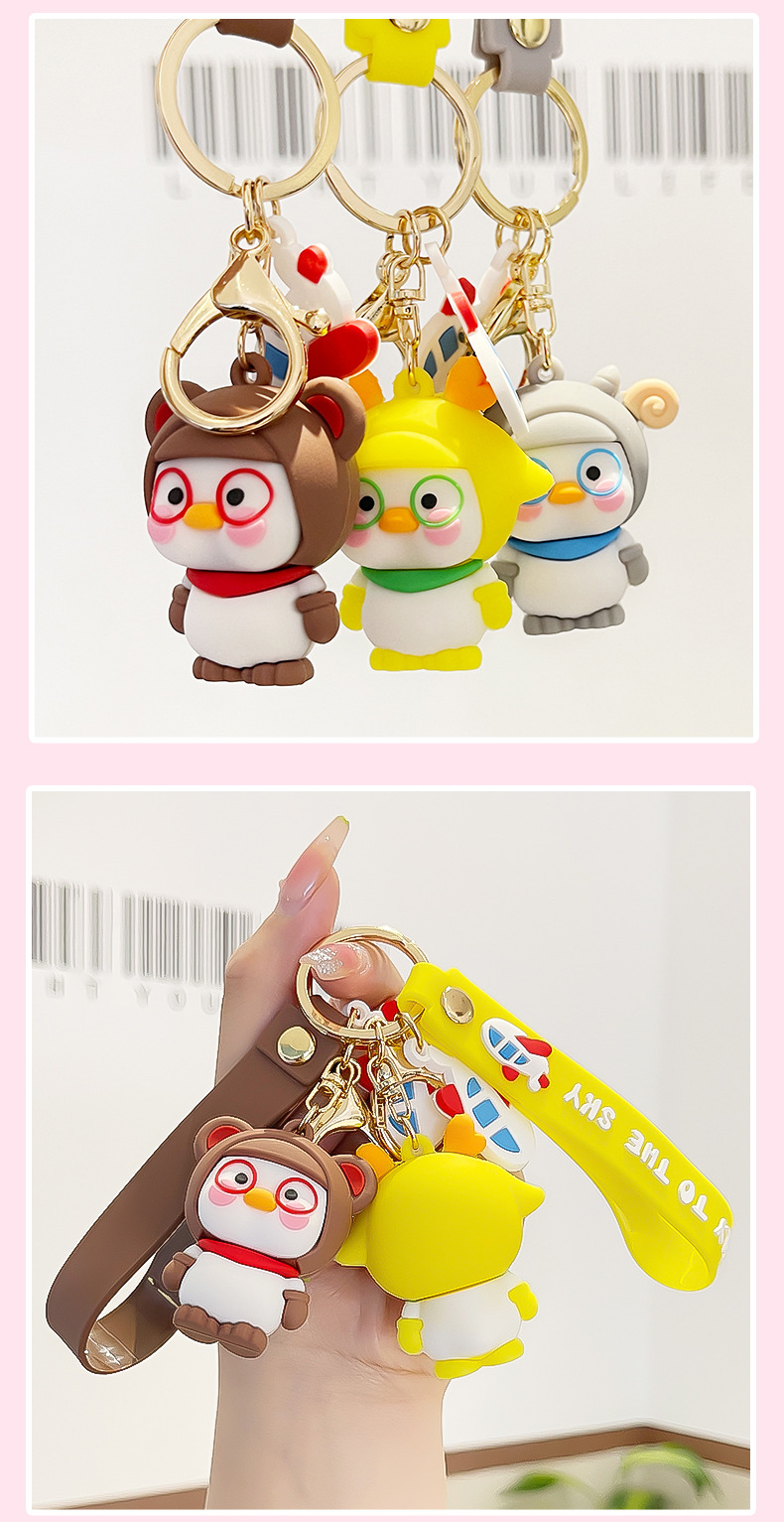 Mặt Dây chuyền móc chìa khóa hoạt hình phi công vịt nguyên bản, móc chìa khóa xe hơi búp bê xu hướng dễ thương cho nữ, mặt dây chuyền túi