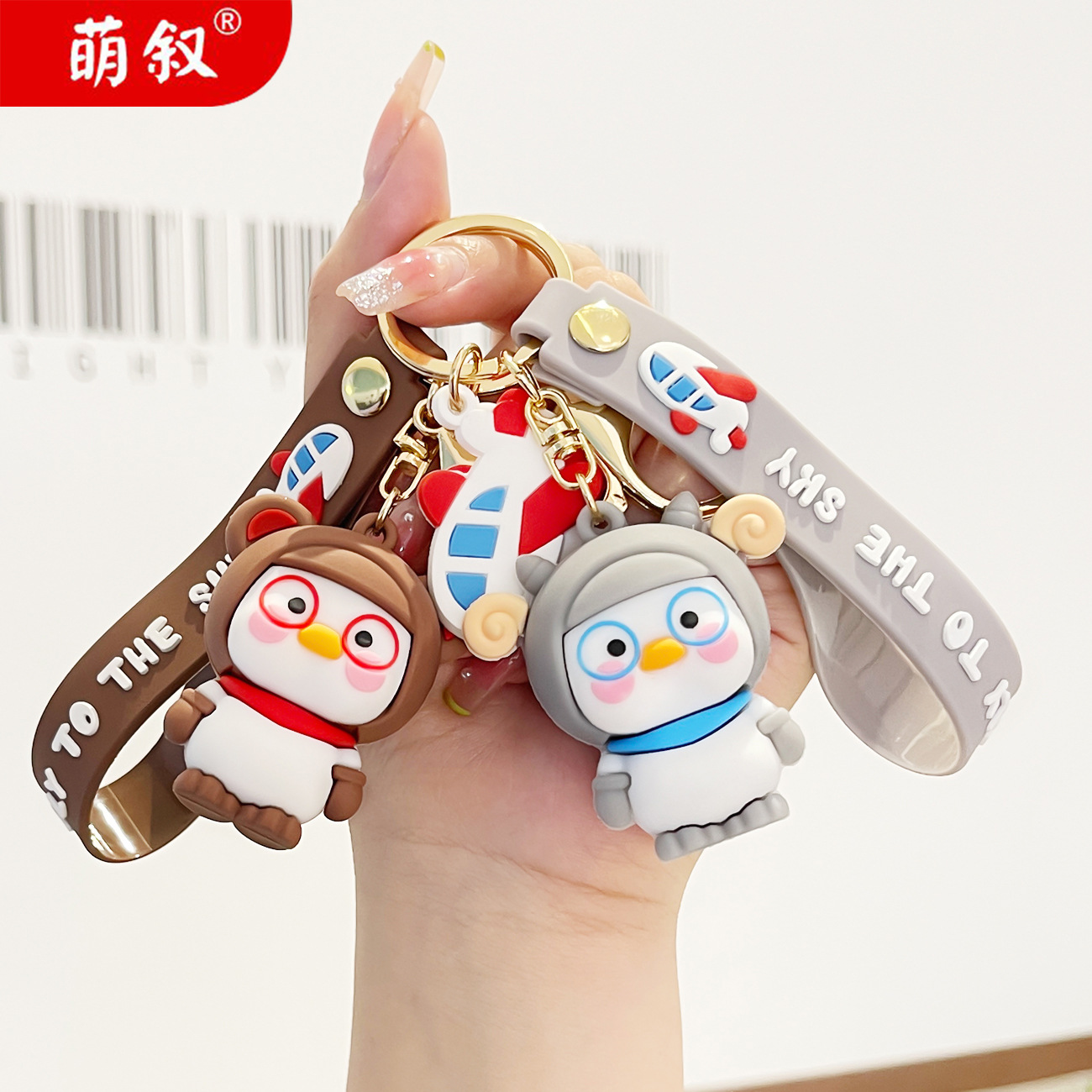 Mặt Dây chuyền móc chìa khóa hoạt hình phi công vịt nguyên bản, móc chìa khóa xe hơi búp bê xu hướng dễ thương cho nữ, mặt dây chuyền túi