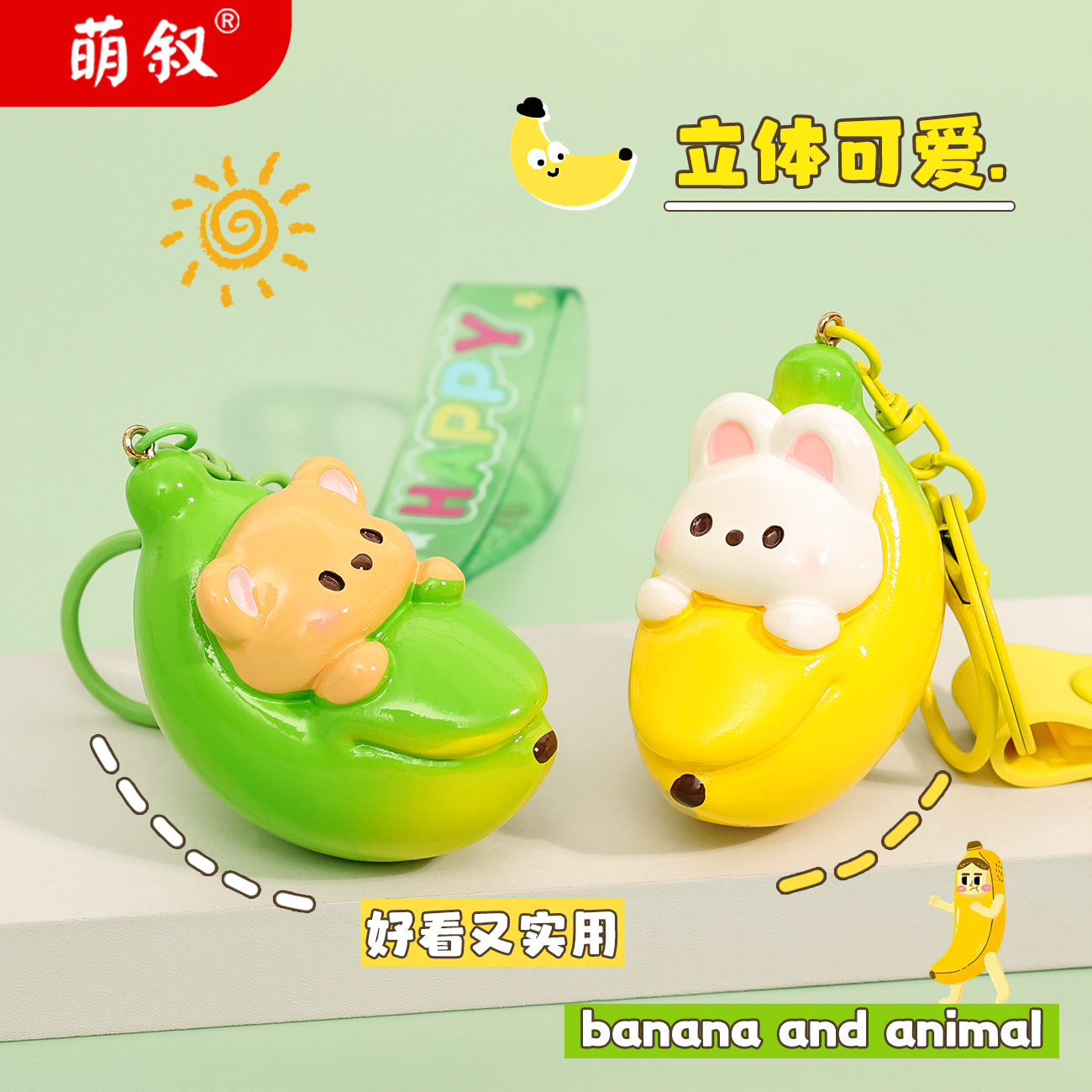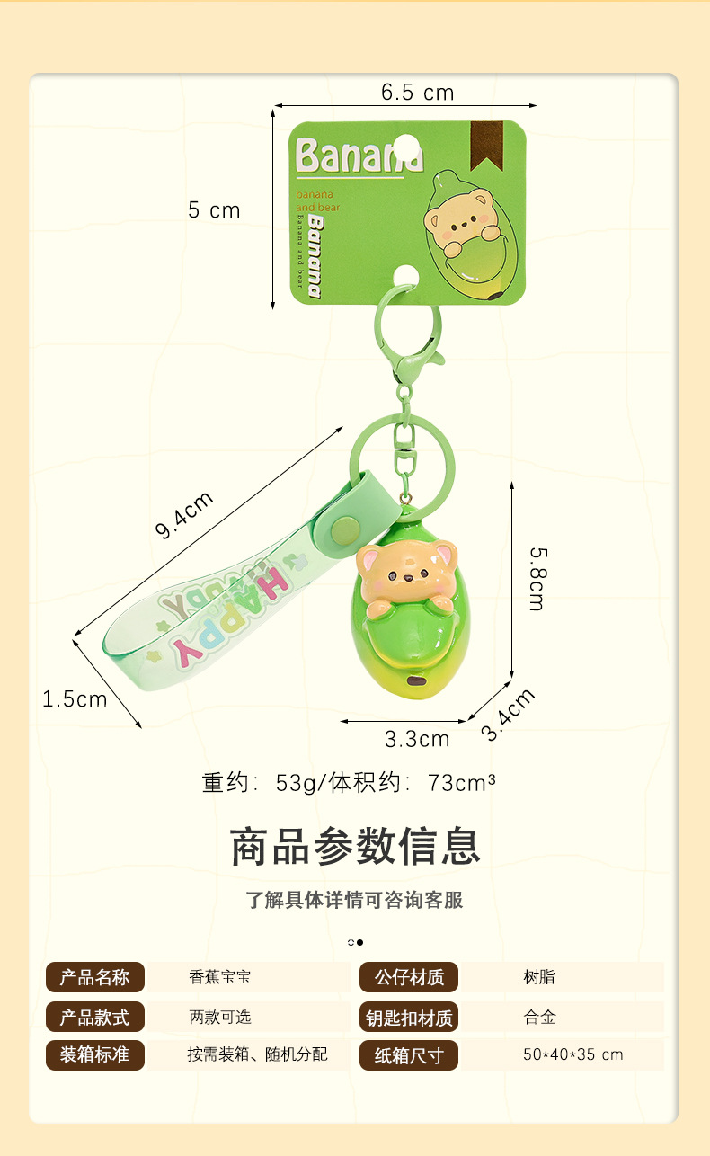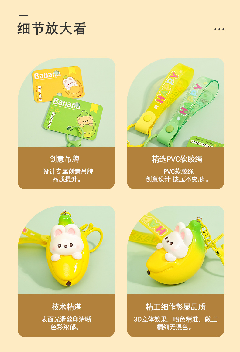 Mặt Dây chuyền móc khóa trẻ em chuối chính hãng dễ thương búp bê cặp đôi túi đồ trang trí móc khóa nhựa bán buôn